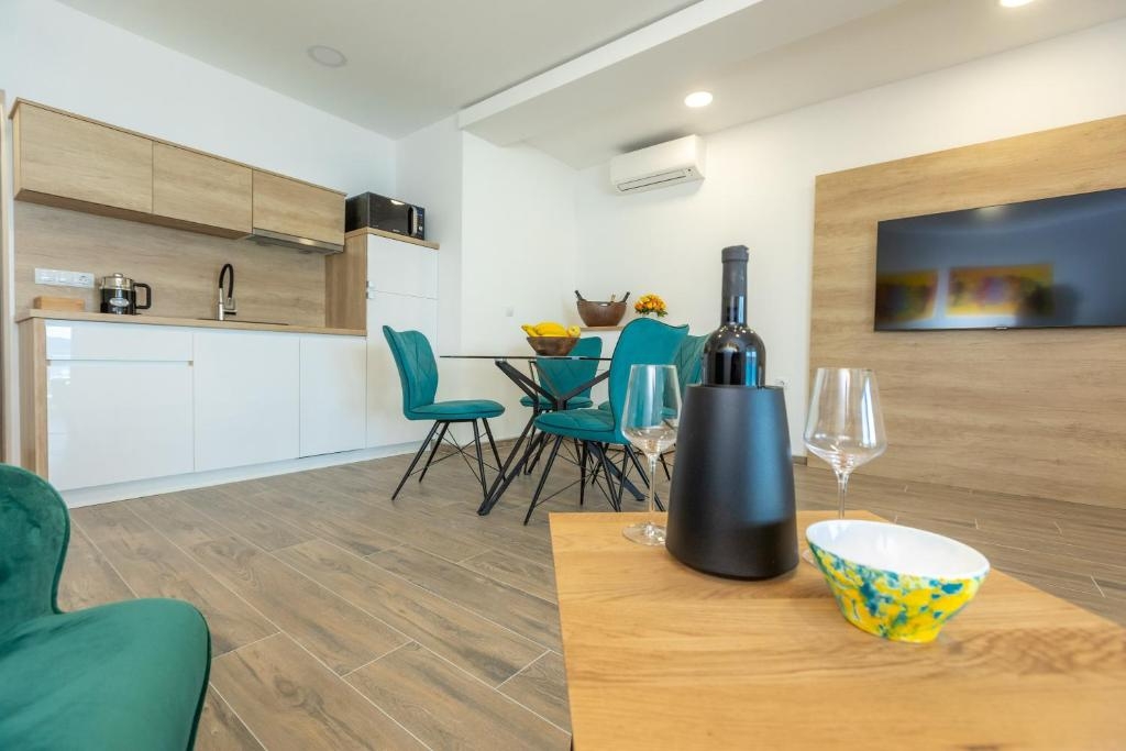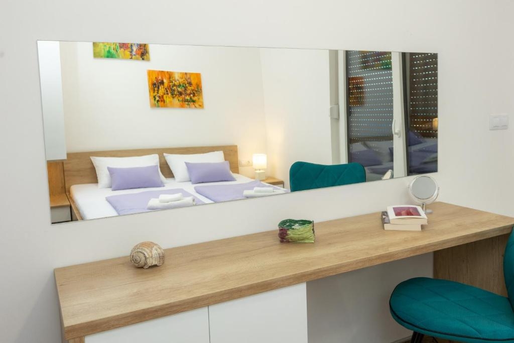 Apartment can accommodate 4 guests. Beds are situated in 2 sleeping rooms, within 55m2. Guests can use a private terrace to enjoy the warm summer evenings. The apartment offers the sea view. Food can be prepared using barbecue which is shared with other guests too. Shared pool is on disposal during stay. INCLUDED IN THE PRICE: tourist tax, final cleaning, air-conditioning, pool, parking, internet, baby cot, iron, hairdryer. OBLIGATORY ADDITIONAL COSTS: short stay fee (surcharge depending on a number of booked nights: 30% - 1, 20% - 2, 10% - 3). OPTIONAL ADDITIONAL COSTS: boat mooring (€30.00 per night). The availability of additional services for your chosen dates of stay, as well as their prices (if none are listed) must be checked ahead of time. Any additional services not shown in the price calculation are payable directly to the property owner and only if used by the visitor.