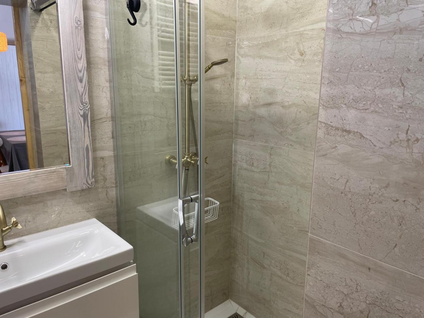 One-Bedroom Apartment. This air-conditioned apartment features 1 living room, 1 separate bedroom and 1 bathroom with a shower. The well-fitted kitchenette has a stovetop, a refrigerator, a dishwasher and kitchenware. The apartment features a terrace with outdoor furniture and sea viewsyou can relax. The unit has 2 beds.