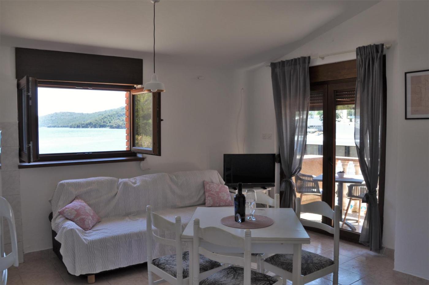 One-Bedroom Apartment. Boasting a private entrance, this air-conditioned apartment features 1 living room, 1 separate bedroom and 1 bathroom with a bath or a shower and a hairdryer. In the well-equipped kitchen, guests will find a refrigerator, kitchenware, an oven and a microwave. Featuring a terrace with sea views, this apartment also features a wardrobe and a flat-screen TV with streaming services. The unit has 2 beds.