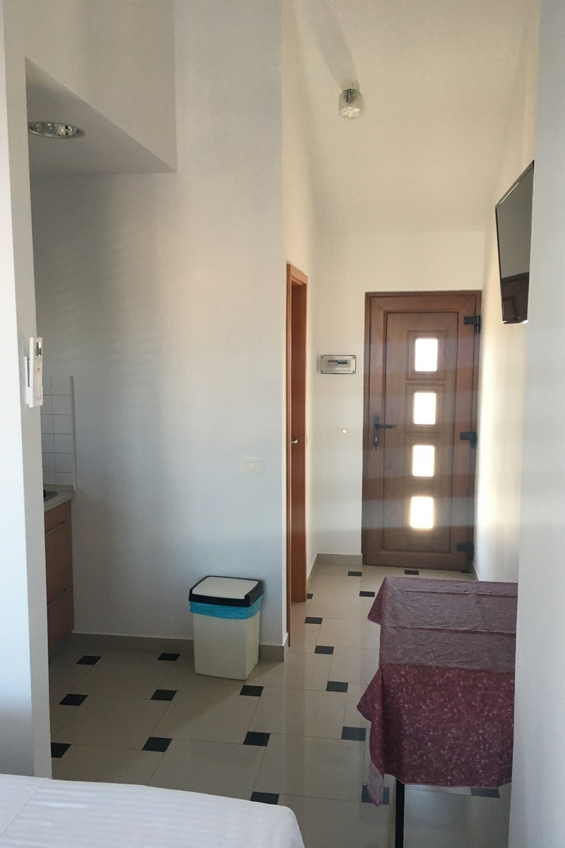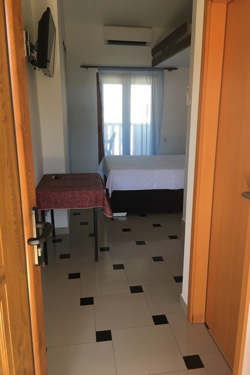 Studio flat can accommodate 2 guests. Beds are situated in 1 sleeping rooms, within 17m2. The studio offers the sea view. Food can be prepared using barbecue which is shared with other guests too. This accommodation unit welcomes pets at an additional charge. Reserved accommodation unit has a shared terrace. INCLUDED IN THE PRICE: tourist tax, final cleaning, air-conditioning, parking, internet. OBLIGATORY ADDITIONAL COSTS: short stay fee (surcharge depending on a number of booked nights: 30% - 1, 20% - 2, 10% - 3). OPTIONAL ADDITIONAL COSTS: pets (€20.00 per night). The availability of additional services for your chosen dates of stay, as well as their prices (if none are listed) must be checked ahead of time. Any additional services not shown in the price calculation are payable directly to the property owner and only if used by the visitor.