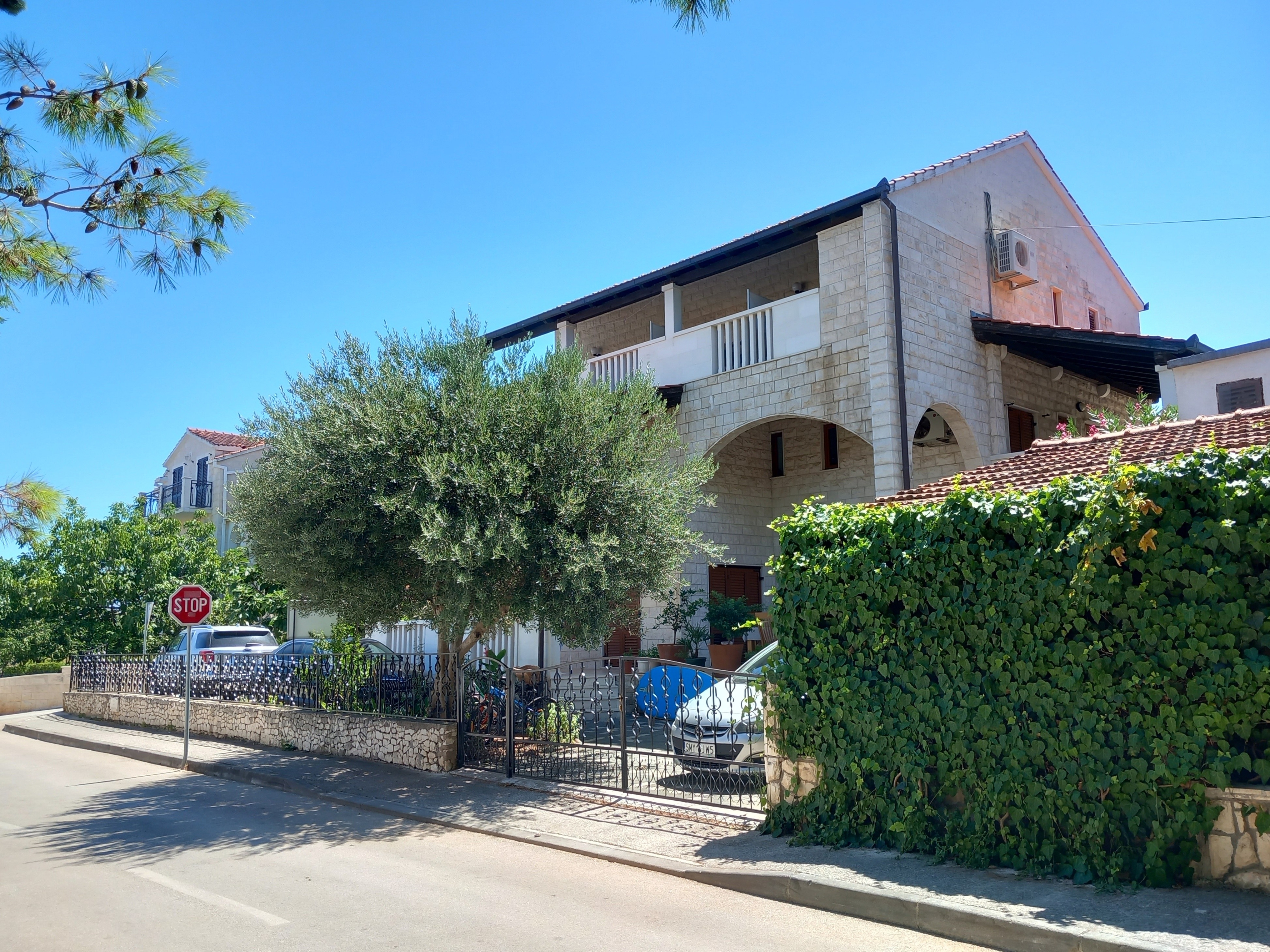 House 21110 in the town of Supetar, Brač - Central Dalmatia has accommodation units of type Apartment (4), Studio flat (4) and is 200 m away from the sea. The nearest beach to this accommodation is a sand beach. Other guests may possibly be found in the house during your holiday, as it contains multiple apartments. Your hosts will not be staying in the house during your holiday. The house owner is under no obligation to accept additional persons and pets that were not stated in the reservation request and it is necessary to report them in advance.AMENITIES Parking lot (Number of parking spaces: 3, Distance from the house: In the courtyard), Parking lot (Number of parking spaces: 5, Distance from the house: 200 m), Barbecue: shared, WiFi Internet LOCATION AND ACCESS Facility is situated near a local road Local road between the property and the beach Car access possible: Yes The facility is situated in relatively quiet surroundings DISTANCES Sea: 200 m Beach: 200 m Center: 1.3 km Shop: 90 m Urgent medical care: 1.5 km Pharmacy: 1.1 km ATMBank machine: 90 m Tourist info: 1.9 km Gas station: 2 km