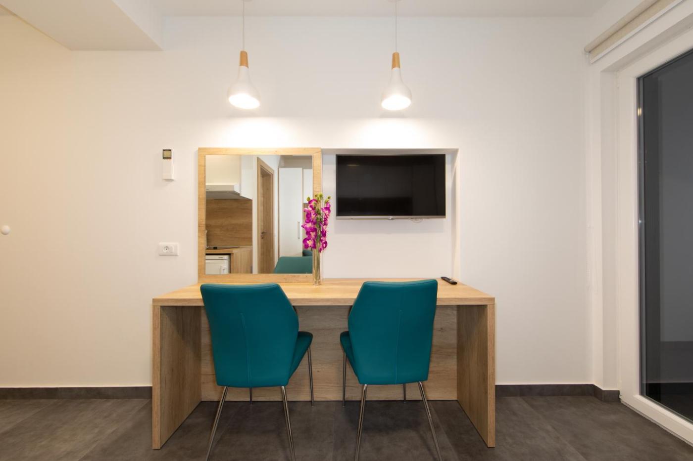 Studio Apartment with Sea View. The air-conditioned apartment has 1 bedroom and 1 bathroom with a shower and a hairdryer. Guests can make meals in the kitchen that features a stovetop, a refrigerator, kitchenware and a microwave. Boasting a balcony with sea views, this apartment also features soundproof walls and a flat-screen TV with satellite channels. The unit has 1 bed.