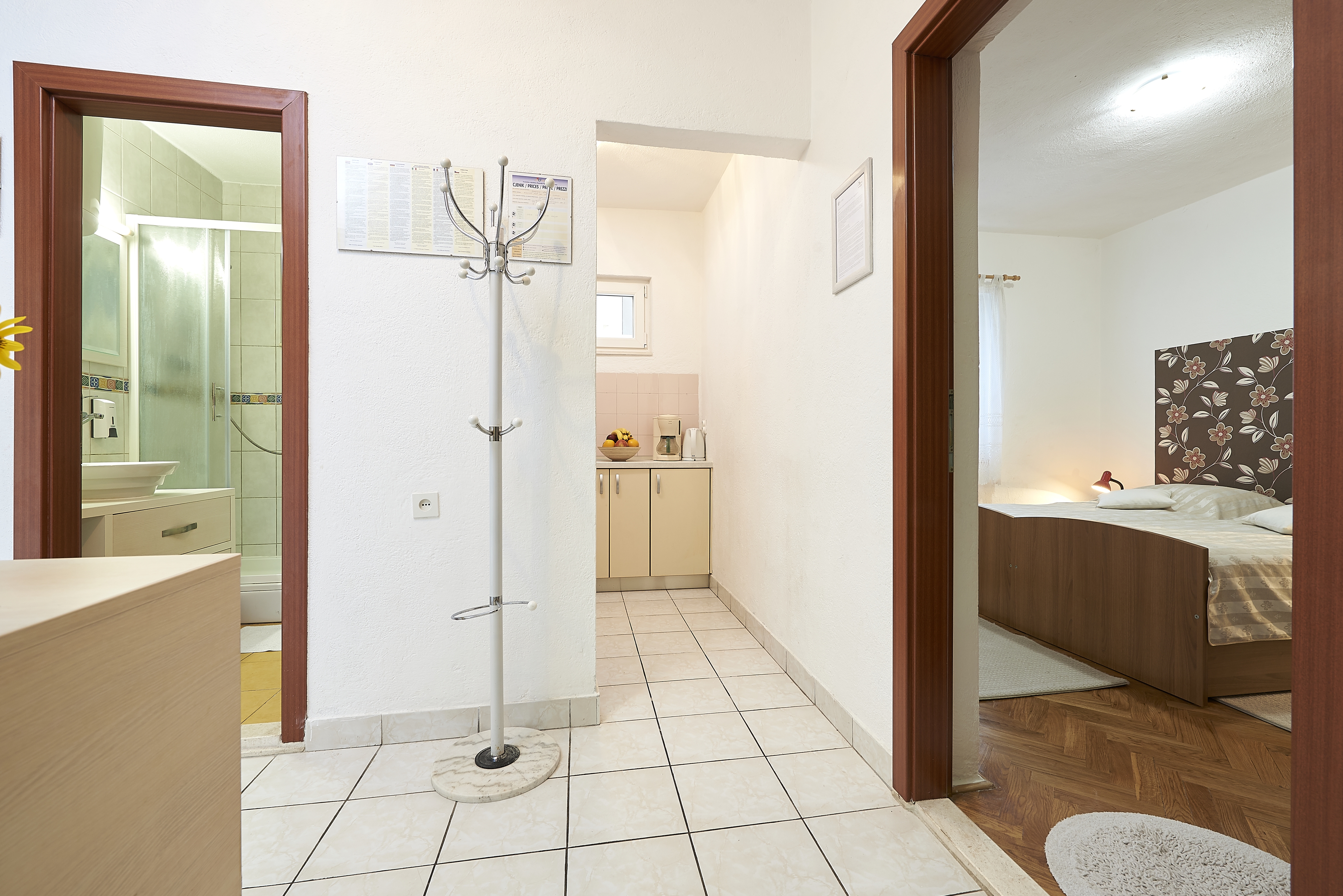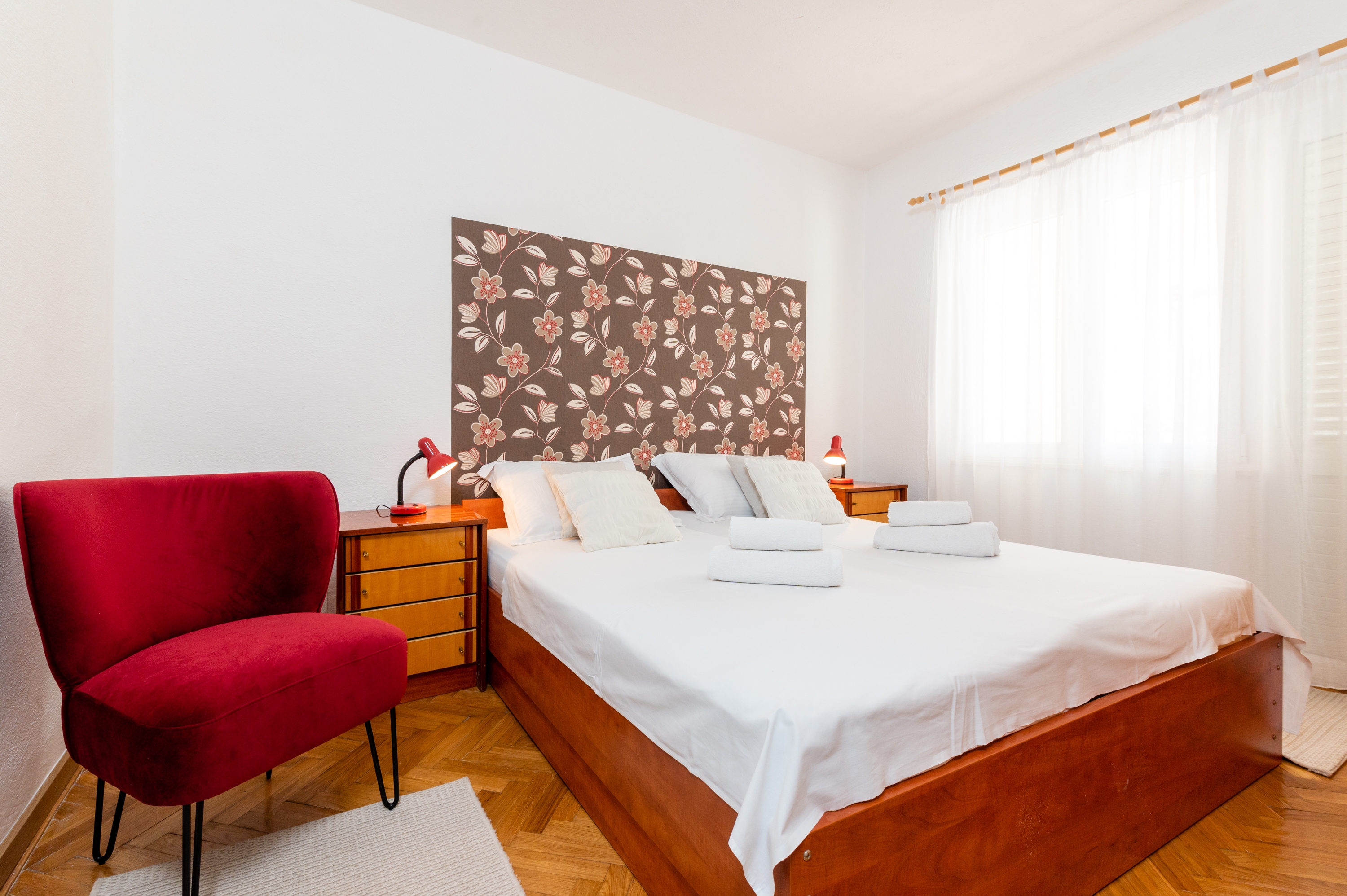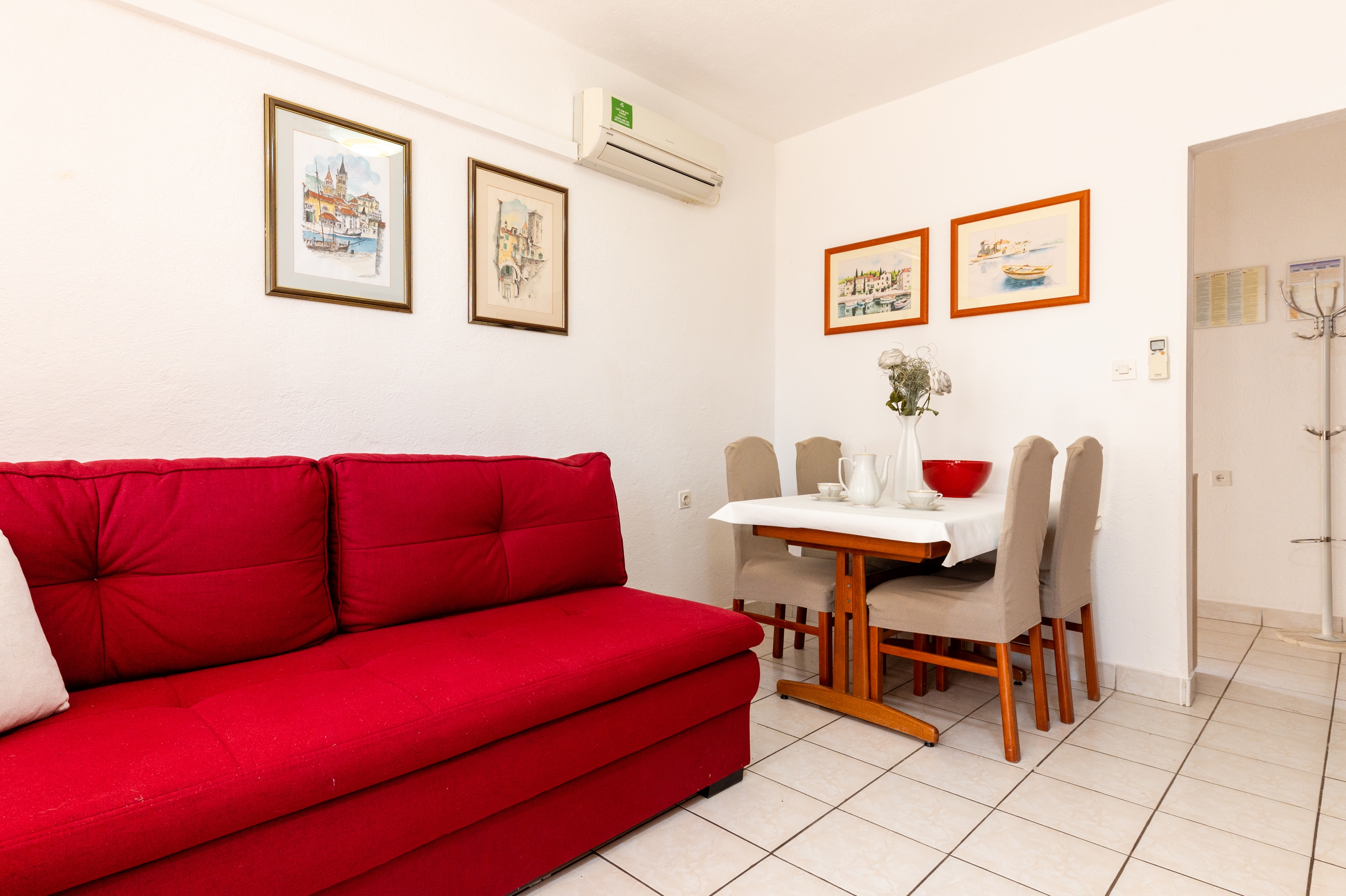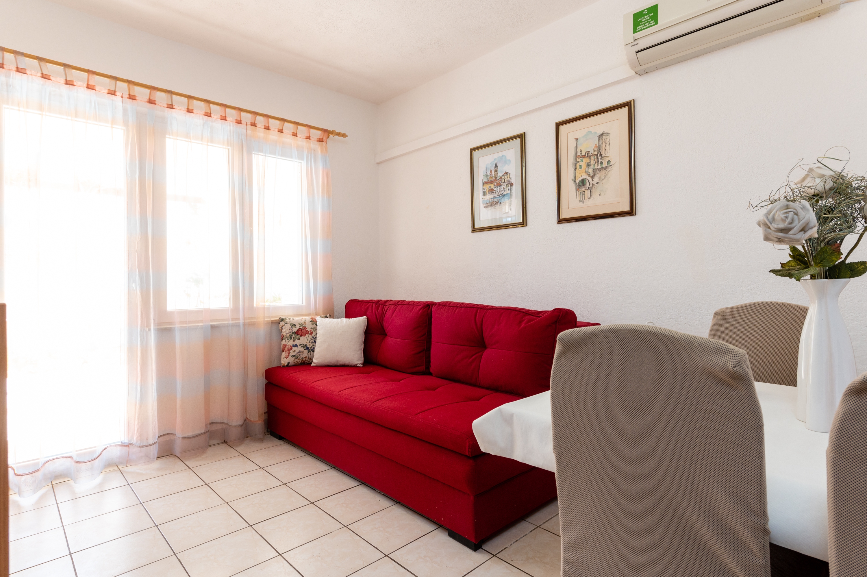 Apartment can accommodate 4 guests. Beds are situated in 2 sleeping rooms, within 46m2. Guests can use a private terrace to enjoy the warm summer evenings. Food can be prepared using barbecue which is shared with other guests too. This accommodation unit welcomes pets at an additional charge. INCLUDED IN THE PRICE: tourist tax, final cleaning, air-conditioning, parking, internet, baby cot, hairdryer. OBLIGATORY ADDITIONAL COSTS: short stay fee (surcharge depending on a number of booked nights: 30% - 1, 20% - 2, 10% - 3). OPTIONAL ADDITIONAL COSTS: laundry (€5.00 washing), pets (€5.00 per night), additional bed (€10.00 per night). The availability of additional services for your chosen dates of stay, as well as their prices (if none are listed) must be checked ahead of time. Any additional services not shown in the price calculation are payable directly to the property owner and only if used by the visitor.