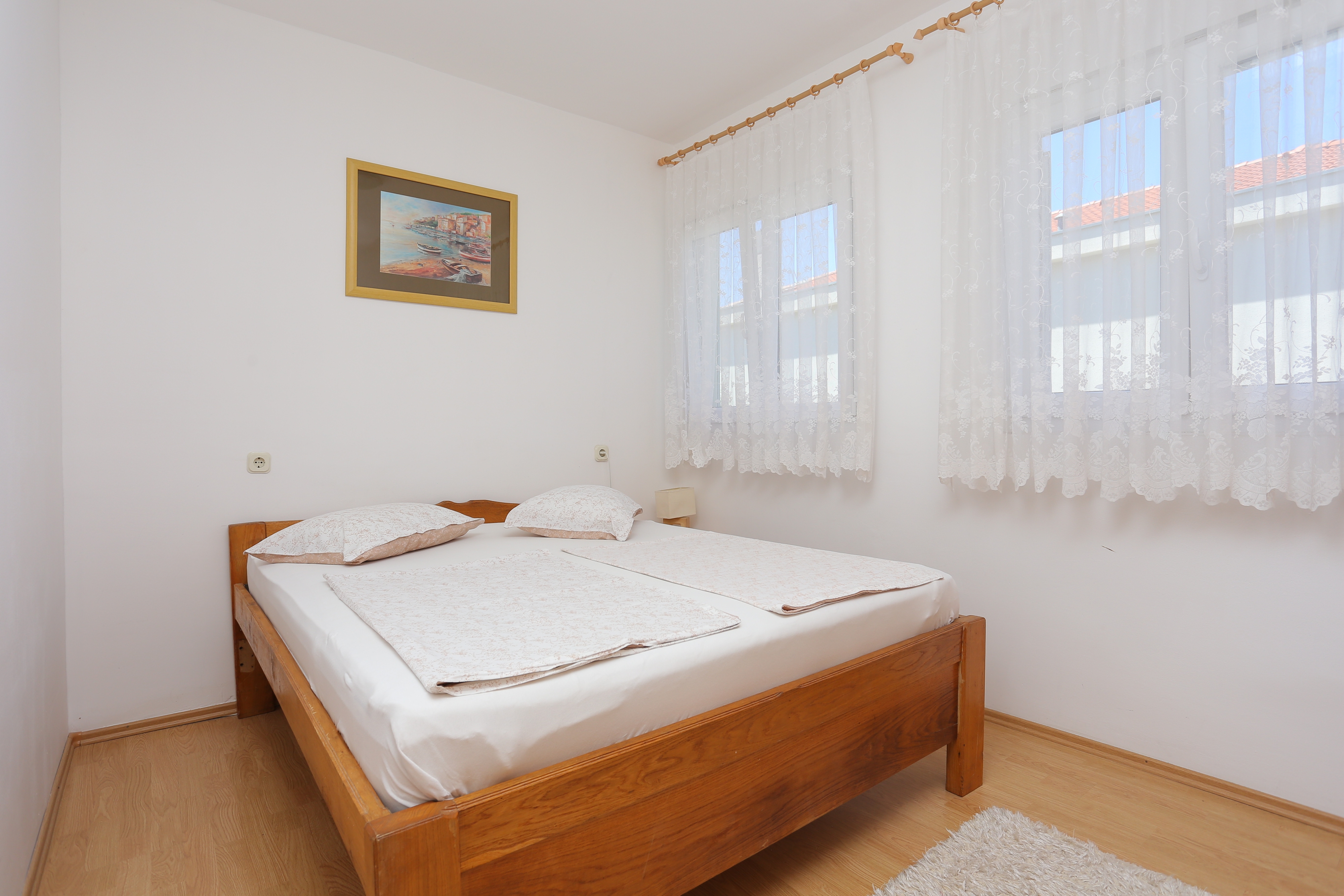 House 16657 in the town of Okrug Donji, Čiovo - Central Dalmatia has accommodation units of type Apartment (2) and is 20 m away from the sea. The nearest beach to this accommodation is a concrete slabs beach. The house is categorized as "Facilities near a beach". Other guests will most likely be present in the house during your holiday. The owners will be present in the house during your stay. The house owner is under no obligation to accept additional persons and pets that were not stated in the reservation request and it is necessary to report them in advance.AMENITIES Infield (Well-kept), Courtyard (150m2, Sitting area), Parking lot (Number of parking spaces: 3, Distance from the house: In the courtyard), Barbecue: shared, WiFi Internet, Hairdryer, Iron, Ironing board, Sunshade, Sunchairs, Baby cot LOCATION AND ACCESS Facility is situated near a local road There is no road between the property and the beach The property is located by the beach Car access possible: Yes, Narrow street: 50 m The facility is situated in relatively quiet surroundings The facility is partly surrounded by vegetation DISTANCES Sea: 20 m Beach: 20 m Center: 8.5 km Shop: 800 m Urgent medical care: 8.5 km Pharmacy: 800 m Exchange office: 800 m ATMBank machine: 5.5 km Tourist info: 800 m Airport: 14 km Bus station: 8.5 km Gas station: 8.5 km Farmers market: 5.5 km