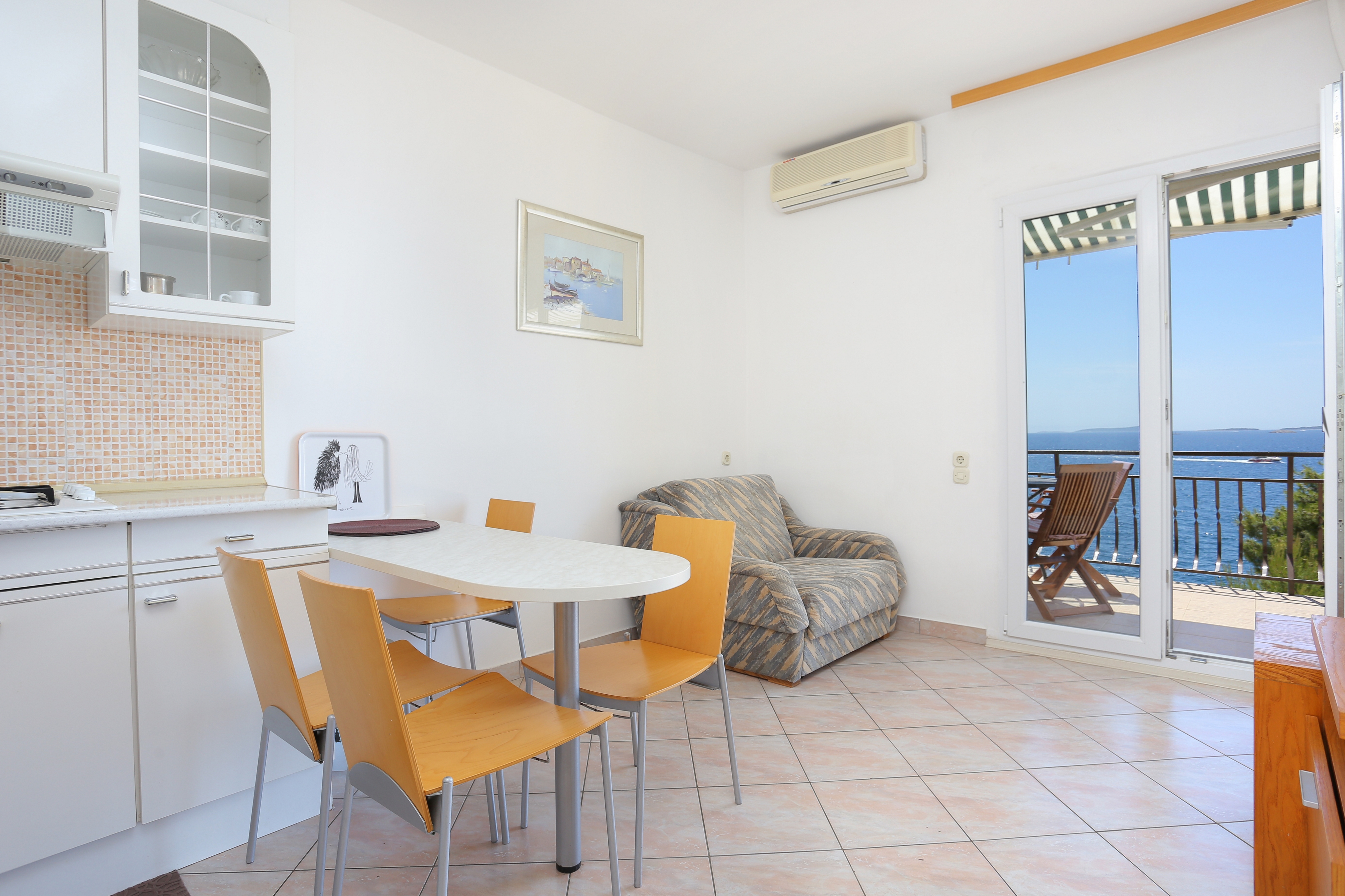 Apartment can accommodate 4 guests. Beds are situated in 2 sleeping rooms, within 44m2. Guests can use a private balcony to enjoy the warm summer evenings. The apartment offers the sea view. Food can be prepared using barbecue which is shared with other guests too. INCLUDED IN THE PRICE: tourist tax, final cleaning, air-conditioning, parking, internet, baby cot, iron, ironing board, hairdryer, sunshade, sunchairs. The availability of additional services for your chosen dates of stay, as well as their prices (if none are listed) must be checked ahead of time. Any additional services not shown in the price calculation are payable directly to the property owner and only if used by the visitor.