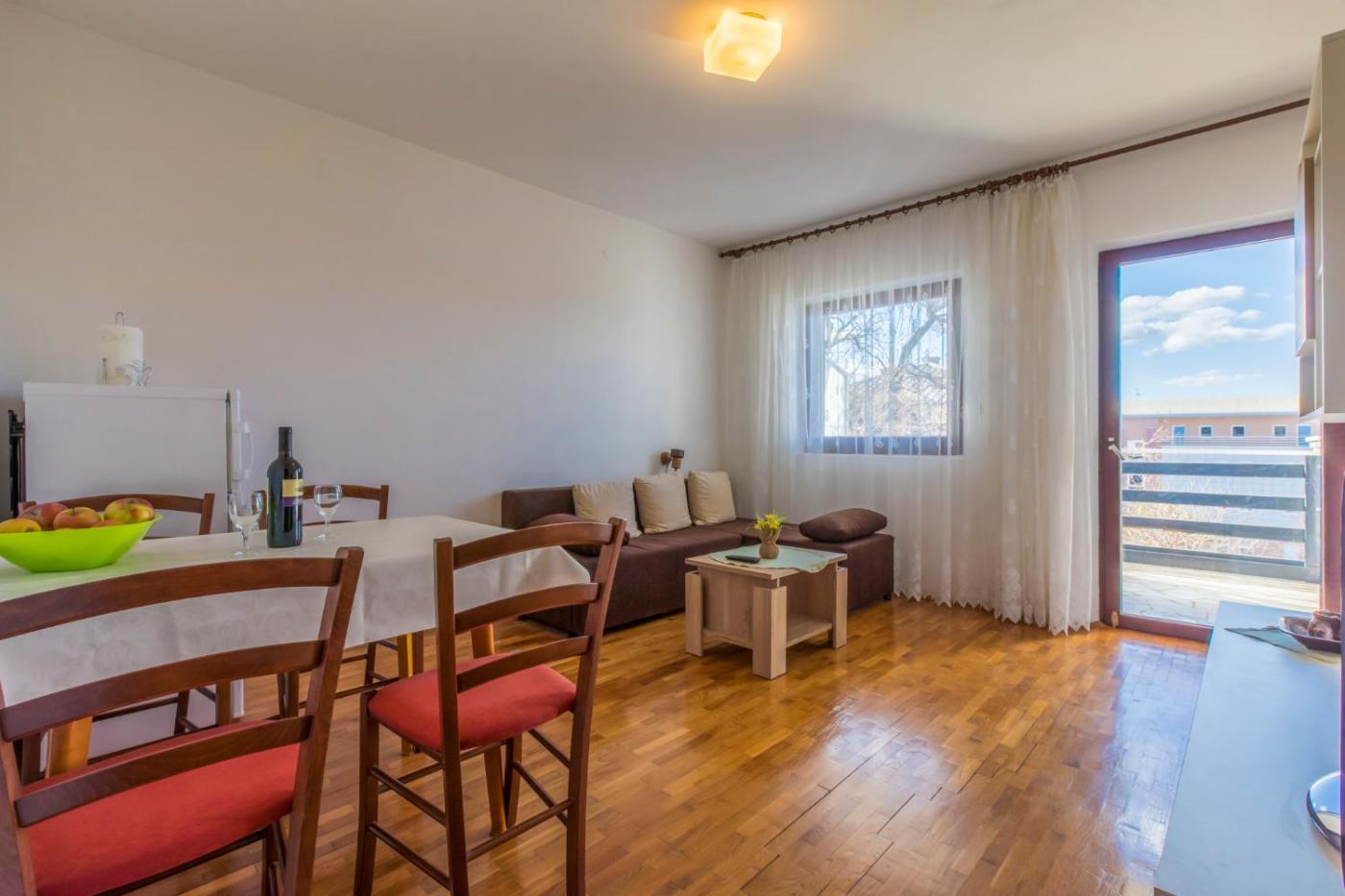 Apartment. The air-conditioned apartment features 2 bedrooms and 1 bathroom with a shower and a hairdryer. Guests will find a stovetop, a refrigerator, an oven and a microwave in the well-fitted kitchen. The apartment also offers a barbecue. This apartment consists of a dining area, a TV with satellite channels a tea and coffee maker and a terrace. The unit offers 3 beds.