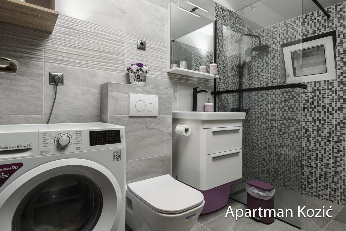 Located in Dolac and only 400 metres from Rtic Beach, Apartmani KoziÄ provides accommodation with sea views, free WiFi and free private parking. This apartment offers air-conditioned accommodation with a balcony. The apartment features family rooms.