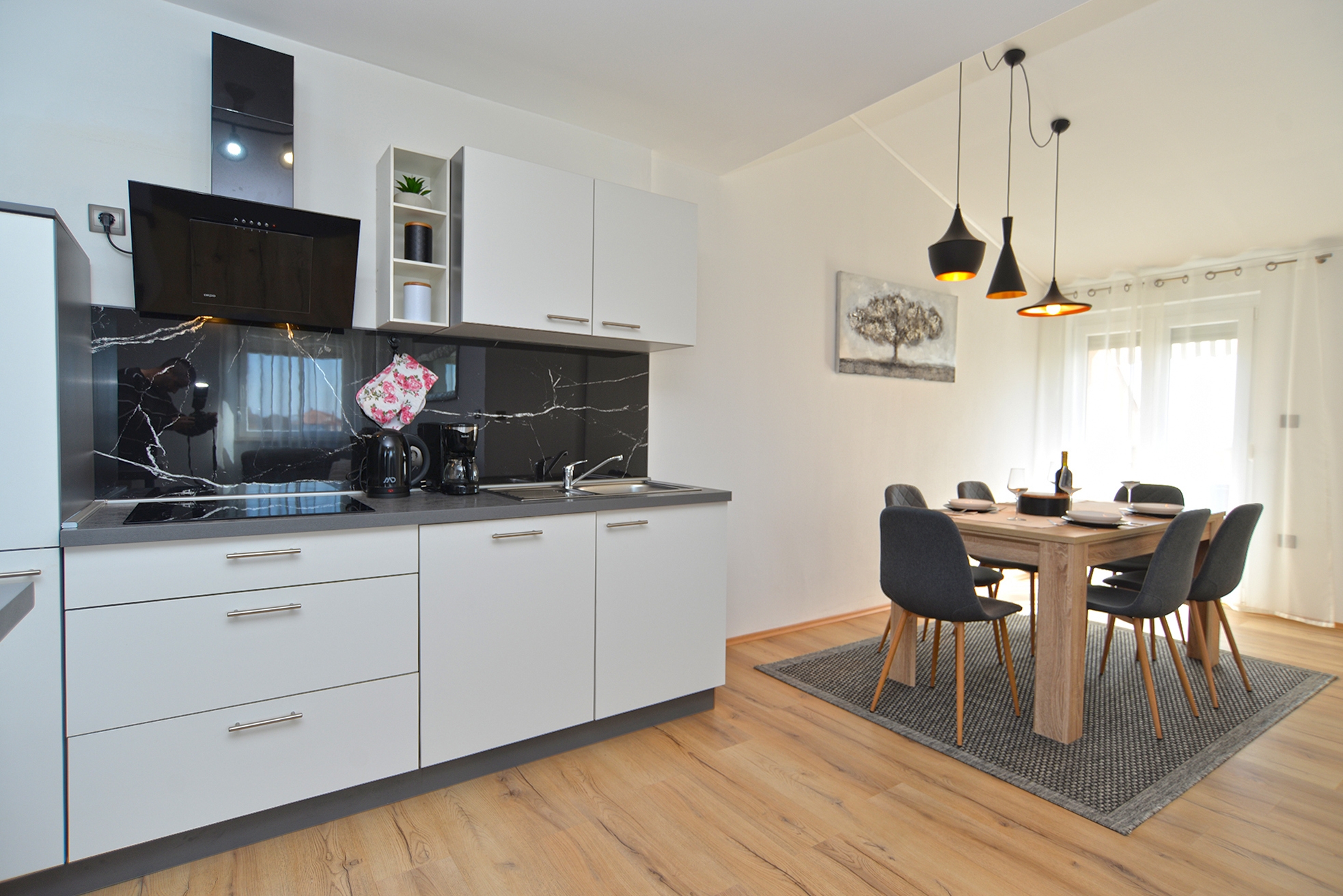 Apartment can accommodate 6 guests. Beds are situated in 2 sleeping rooms, but also in the living room, within 72m2. Guests can use a private balcony to enjoy the warm summer evenings. The apartment offers the sea view. Food can be prepared using barbecue which is shared with other guests too. Shared pool is on disposal during stay. INCLUDED IN THE PRICE: tourist tax, final cleaning, air-conditioning, pool, parking, internet, baby cot, hairdryer, portable barbecue. The availability of additional services for your chosen dates of stay, as well as their prices (if none are listed) must be checked ahead of time. Any additional services not shown in the price calculation are payable directly to the property owner and only if used by the visitor.