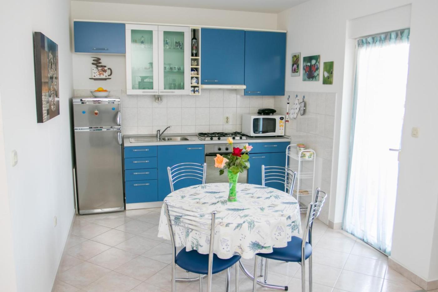 One-Bedroom Apartment. Boasting a private entrance, this air-conditioned apartment includes 1 living room, 1 separate bedroom and 1 bathroom with a shower and a hairdryer. In the fully equipped kitchen, guests will find a stovetop, a refrigerator, kitchenware and an oven. Featuring a terrace with a quiet street view, this apartment also offers a washing machine and a flat-screen TV with satellite channels. The unit has 2 beds.