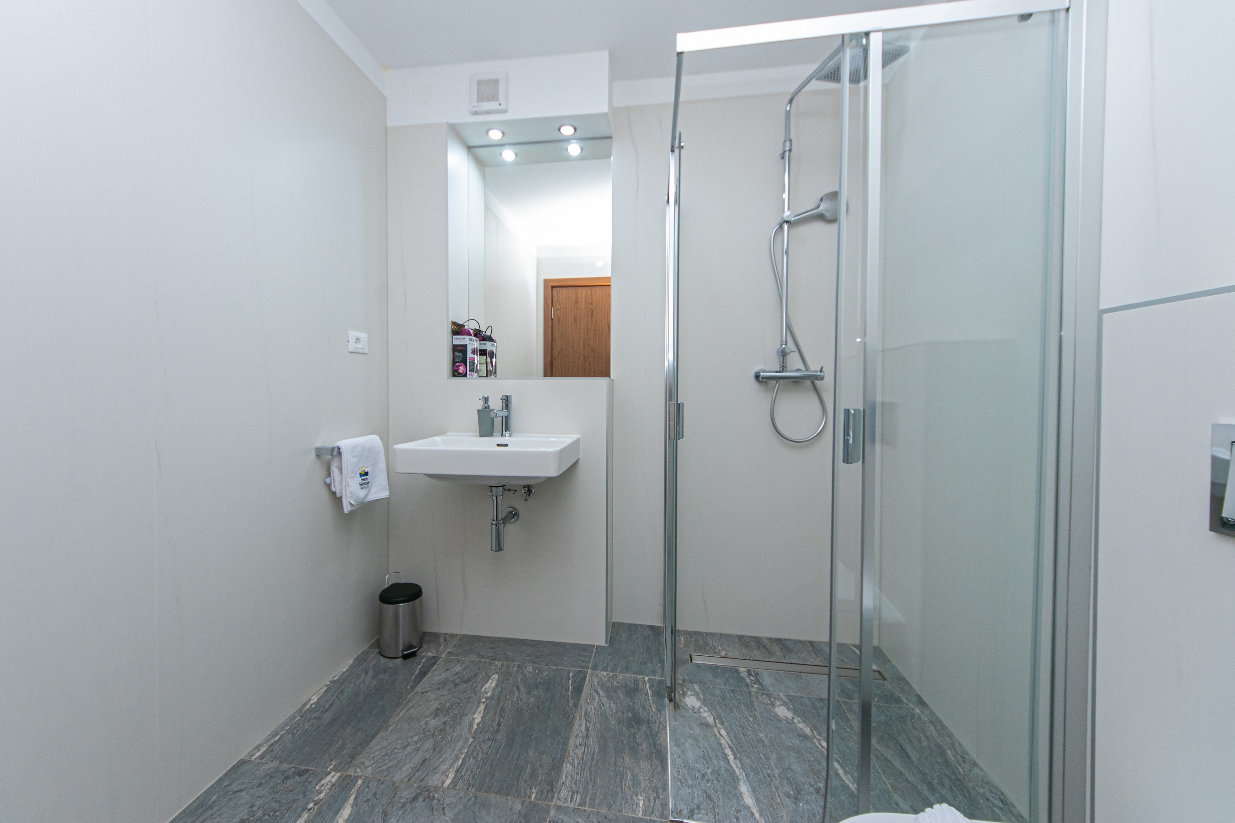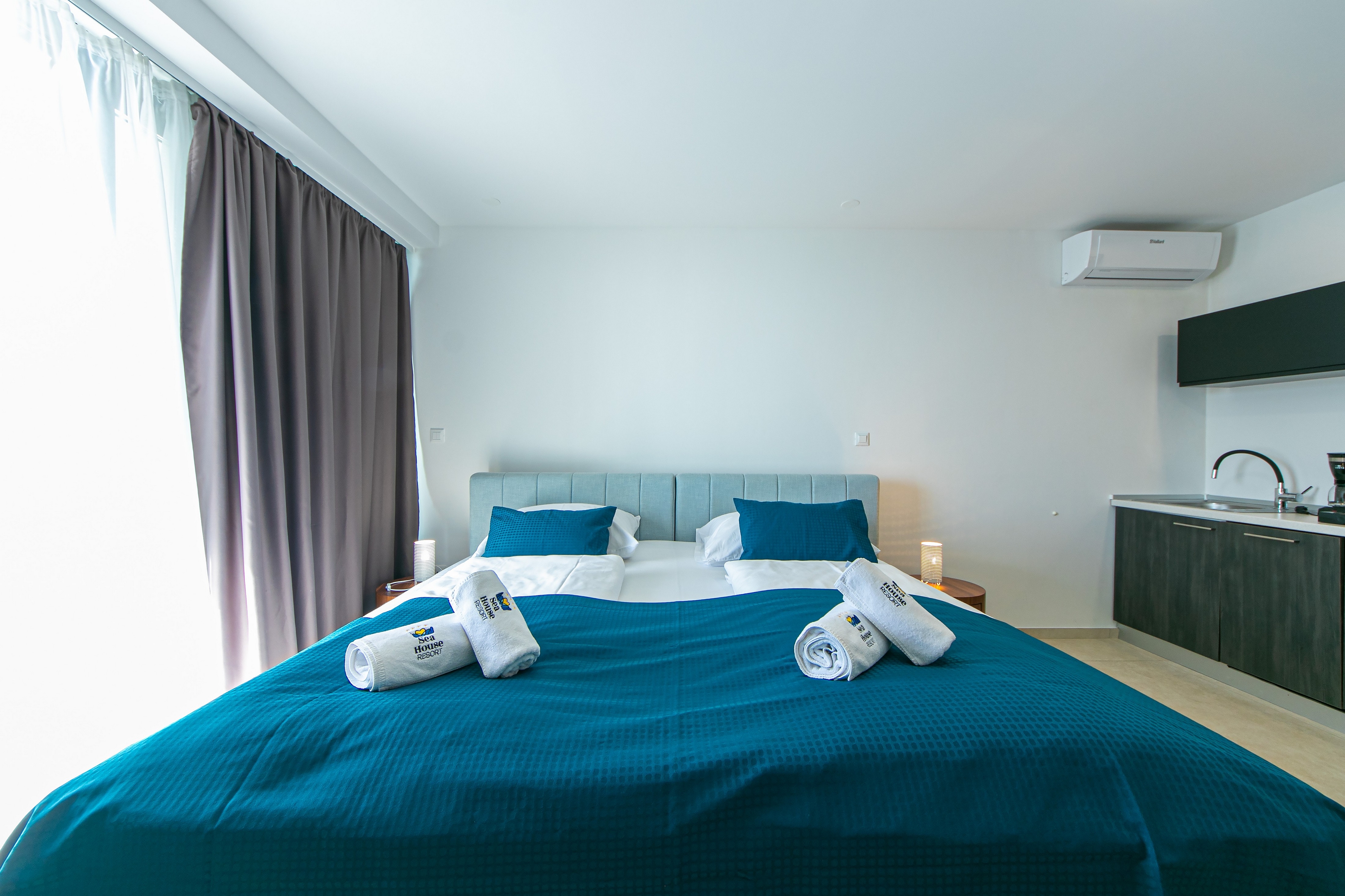 Studio flat can accommodate 2 guests. Beds are situated in 1 sleeping rooms, within 31m2. Guests can use a private terrace to enjoy the warm summer evenings. The studio offers the sea view. Shared pool is on disposal during stay. INCLUDED IN THE PRICE: breakfast, final cleaning, air-conditioning, pool, parking, internet, baby cot, iron, ironing board, hairdryer. OBLIGATORY ADDITIONAL COSTS: tourist tax (adults €0.93 - €2.00 nightperson, discount for children aged 12 - 17). OPTIONAL ADDITIONAL COSTS: laundry (€5.00 washing). The availability of additional services for your chosen dates of stay, as well as their prices (if none are listed) must be checked ahead of time. Any additional services not shown in the price calculation are payable directly to the property owner and only if used by the visitor.