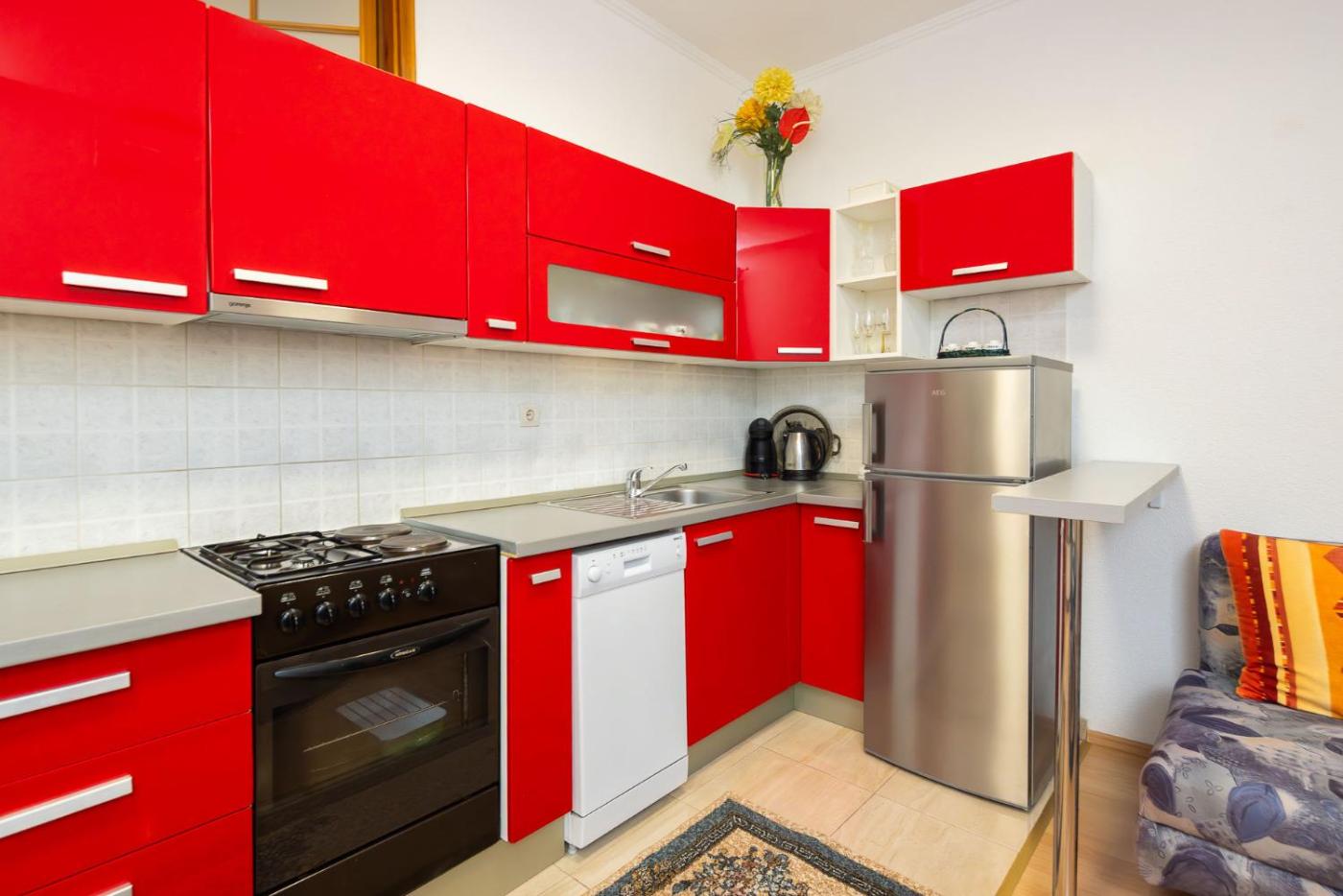Two-Bedroom Apartment. This air-conditioned apartment comprises 1 living room, 2 separate bedrooms and 1 bathroom with a shower. The well-fitted kitchen features a stovetop, a refrigerator, a dishwasher and kitchenware. The apartment has parquet floors, a seating area with a flat-screen TV, a washing machine, a coffee machine, as well as a dining area. The unit offers 4 beds.