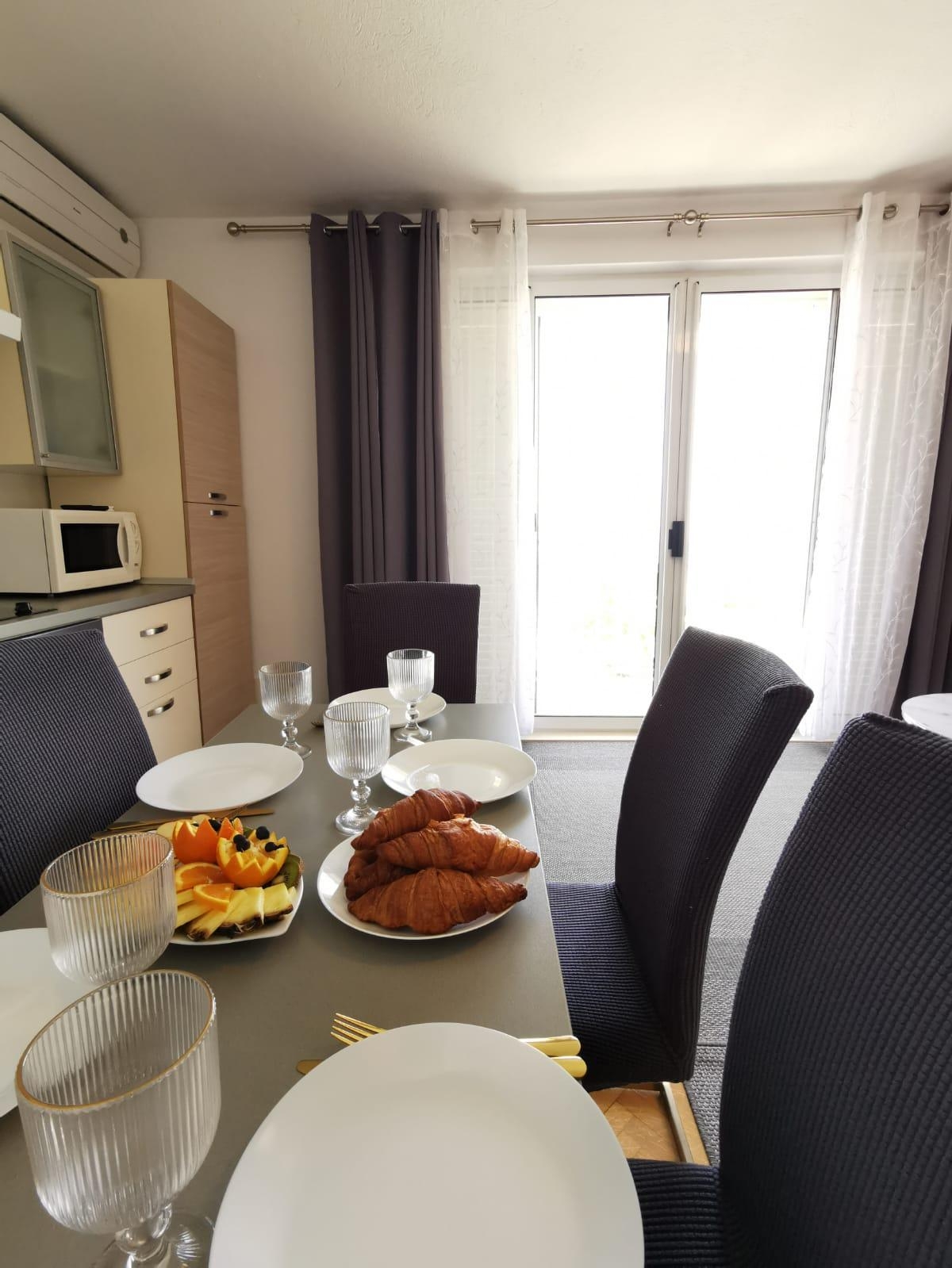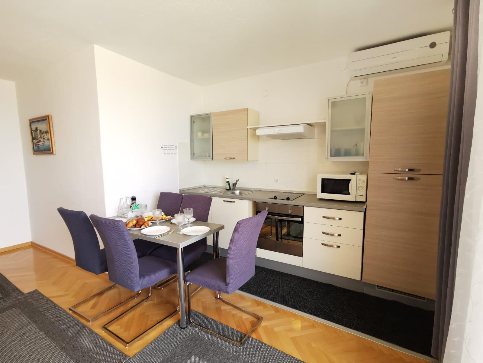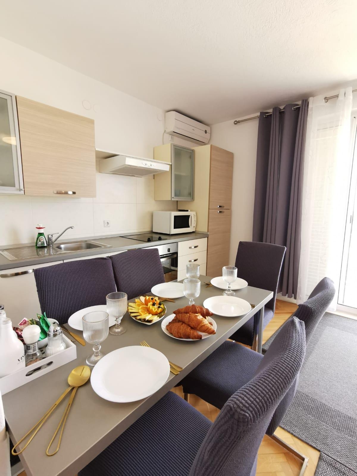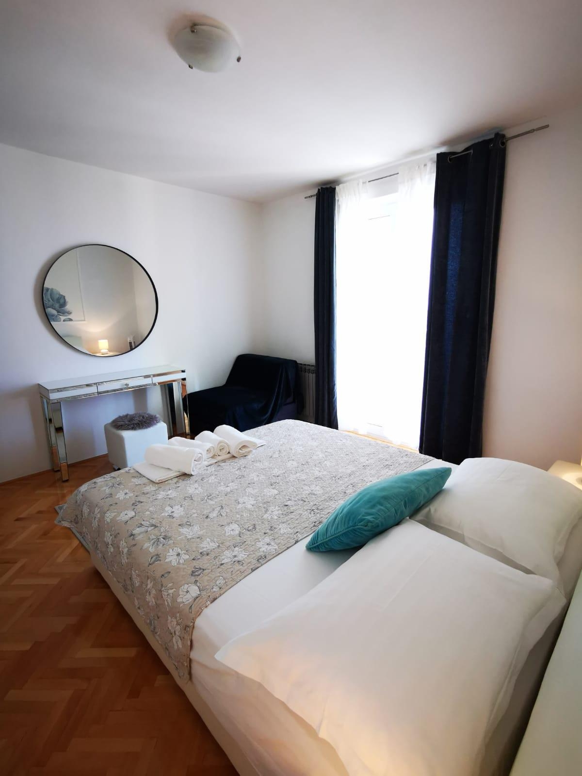 Apartment can accommodate 5 guests. Beds are situated in 3 sleeping rooms, within 110m2. Guests can use a private balcony to enjoy the warm summer evenings. The apartment offers the sea view. INCLUDED IN THE PRICE: tourist tax, final cleaning, air-conditioning, central heating, parking, internet, iron, ironing board, hairdryer, 1 bed for children (included in the price). The availability of additional services for your chosen dates of stay, as well as their prices (if none are listed) must be checked ahead of time. Any additional services not shown in the price calculation are payable directly to the property owner and only if used by the visitor.