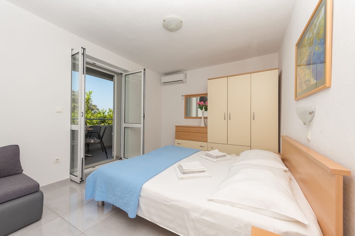 Apartment can accommodate 4 guests. Beds are situated in 2 sleeping rooms, within 43m2. Guests can use a private balcony to enjoy the warm summer evenings. The apartment offers the sea view. INCLUDED IN THE PRICE: tourist tax, final cleaning, air-conditioning, parking, internet, iron, ironing board, hairdryer. OBLIGATORY ADDITIONAL COSTS: short stay fee (surcharge depending on a number of booked nights: 30% - 1, 20% - 2, 10% - 3). The availability of additional services for your chosen dates of stay, as well as their prices (if none are listed) must be checked ahead of time. Any additional services not shown in the price calculation are payable directly to the property owner and only if used by the visitor.
