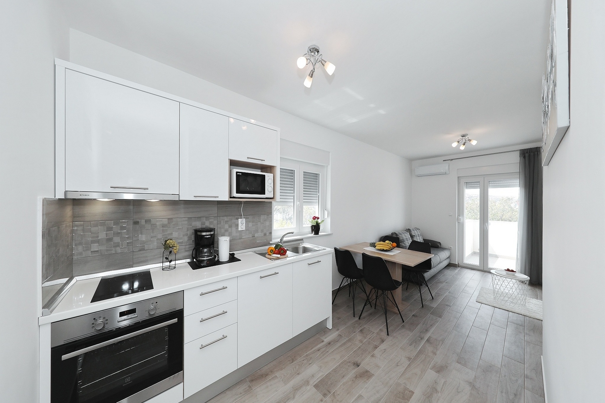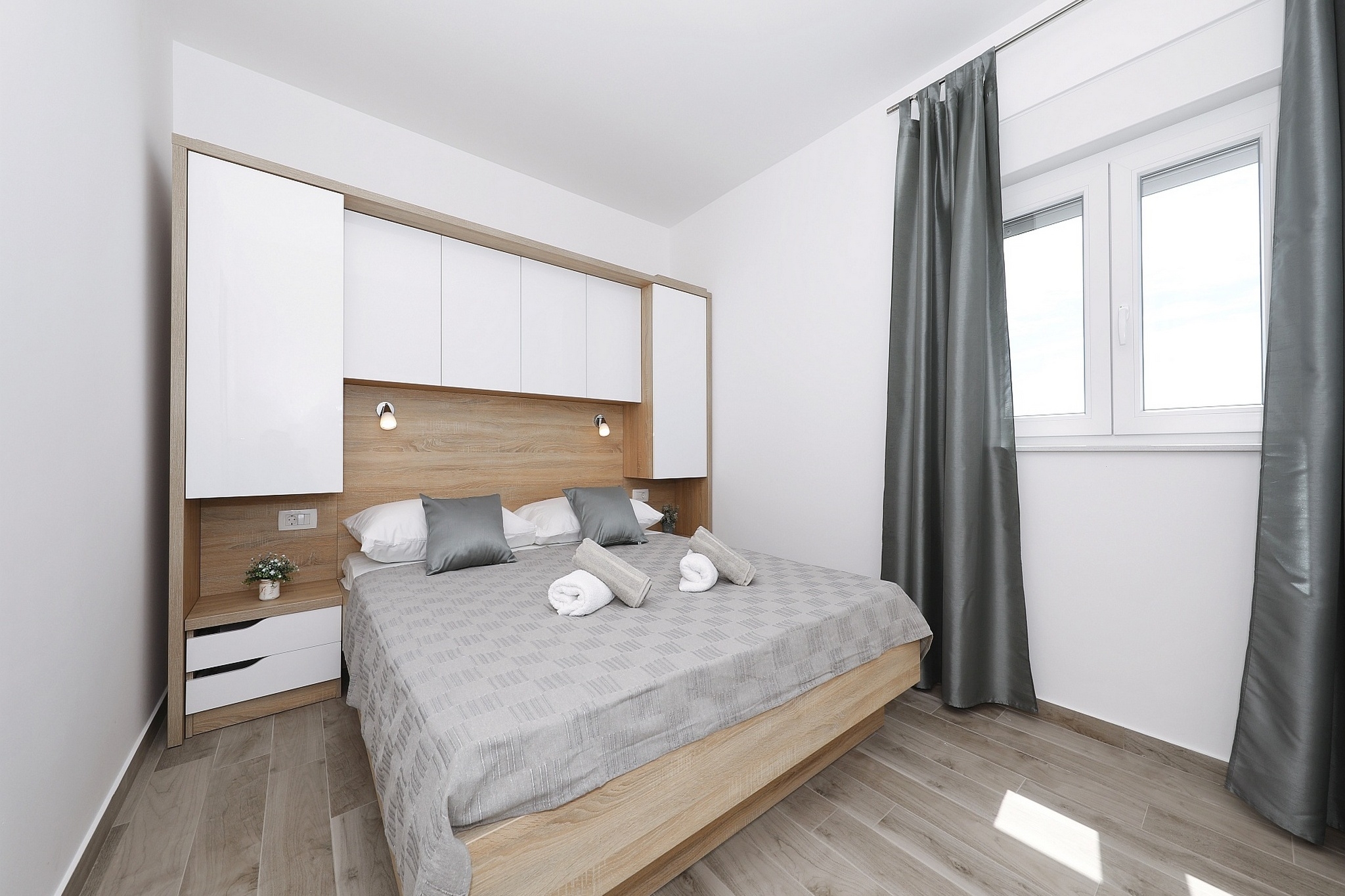 Apartment can accommodate 4 guests. Beds are situated in 1 sleeping rooms, but also in the living room, within 31m2. Guests can use a private balcony to enjoy the warm summer evenings. Food can be prepared using barbecue which is shared with other guests too. Shared pool is on disposal during stay. INCLUDED IN THE PRICE: tourist tax, final cleaning, air-conditioning, pool, parking, internet, laundry, baby cot. The availability of additional services for your chosen dates of stay, as well as their prices (if none are listed) must be checked ahead of time. Any additional services not shown in the price calculation are payable directly to the property owner and only if used by the visitor.