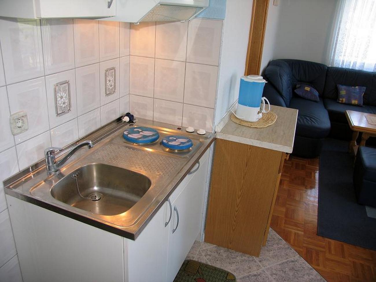 Apartment can accommodate 5 guests. Beds are situated in 2 sleeping rooms, but also in the living room, within 56m2. Guests can use a private terrace to enjoy the warm summer evenings. The apartment offers the sea view. Food can be prepared using barbecue which is shared with other guests too. Shared pool is on disposal during stay. INCLUDED IN THE PRICE: tourist tax, final cleaning, air-conditioning, central heating, pool, parking, internet, baby cot, additional bed, iron, ironing board, hairdryer, sunshade, sunchairs. OBLIGATORY ADDITIONAL COSTS: short stay fee (surcharge depending on a number of booked nights: 30% - 1, 20% - 2, 10% - 3). OPTIONAL ADDITIONAL COSTS: breakfast (€10.00, a 50% discount for children aged 4 to 12 years, Children up to age 4 free of charge), half-board (€25.00, a 50% discount for children aged 4 to 12 years, Children up to age 4 free of charge), full board (€40.00, a 50% discount for children aged 4 to 12 years, Children up to age 4 free of charge). The availability of additional services for your chosen dates of stay, as well as their prices (if none are listed) must be checked ahead of time. Any additional services not shown in the price calculation are payable directly to the property owner and only if used by the visitor.