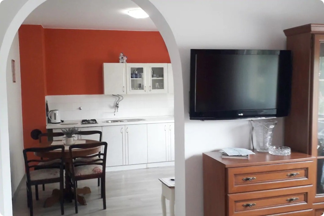 Studio flat can accommodate 4 guests. Beds are situated in 2 sleeping rooms, but also in the dining room, within 40m2. Guests can use a private balcony to enjoy the warm summer evenings. INCLUDED IN THE PRICE: tourist tax, final cleaning, air-conditioning, internet, hairdryer. The availability of additional services for your chosen dates of stay, as well as their prices (if none are listed) must be checked ahead of time. Any additional services not shown in the price calculation are payable directly to the property owner and only if used by the visitor.