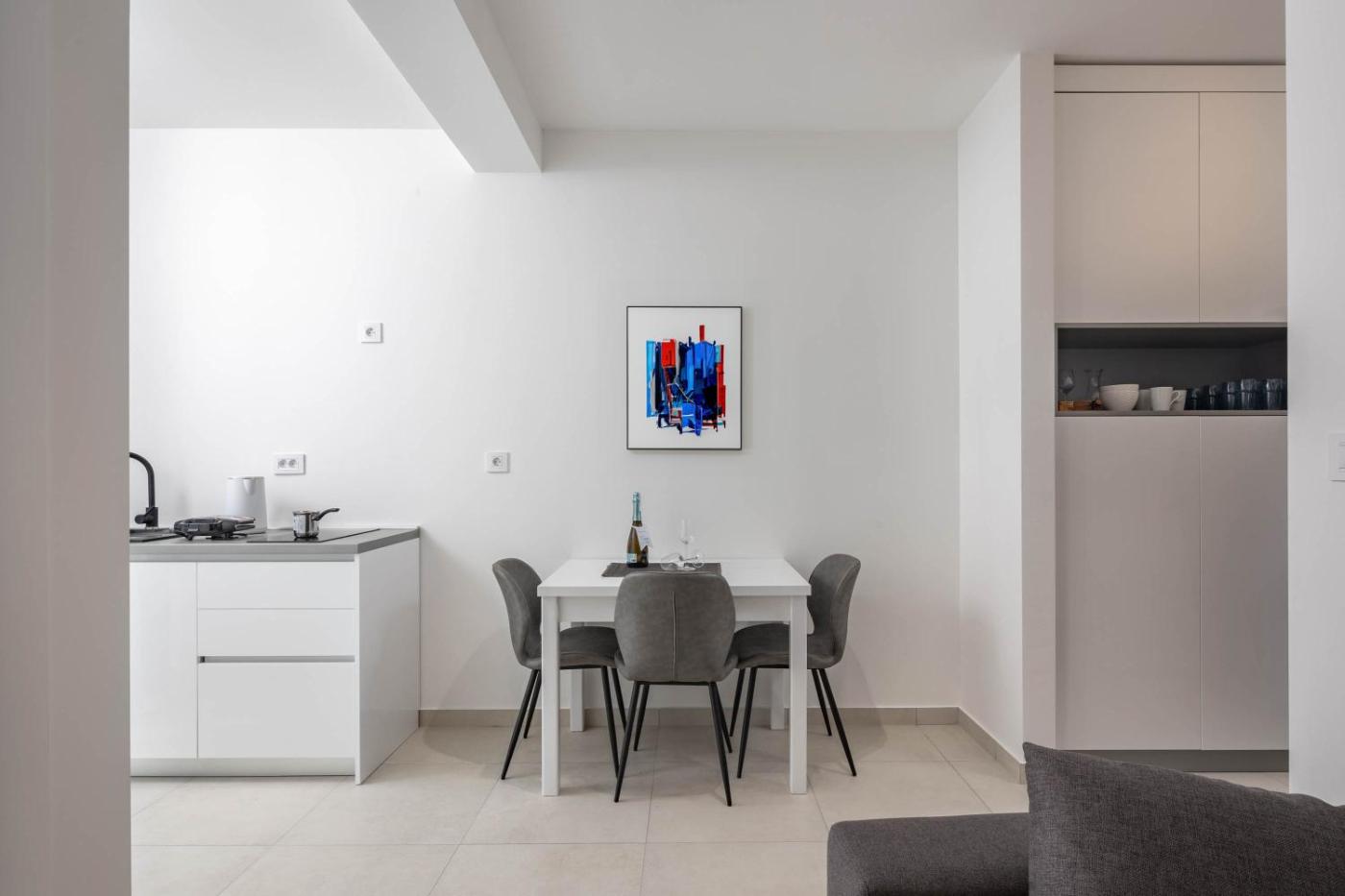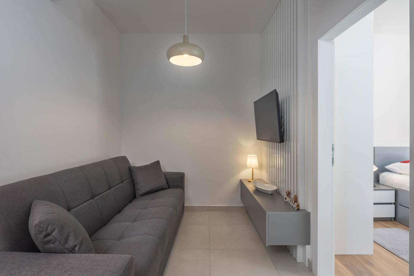 Apartment with Balcony. This air-conditioned apartment is comprised of 1 living room, 1 separate bedroom and 1 bathroom with a shower. Guests can make meals in the kitchenette that is fitted with a stovetop, a refrigerator, a dishwasher and kitchenware. Featuring a balcony with sea views, this apartment also offers a coffee machine and a flat-screen TV. The unit offers 2 beds.
