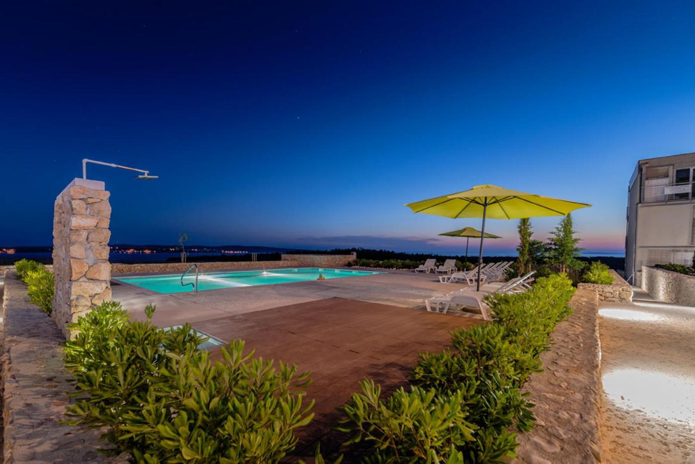 Three-Bedroom Apartment. The private pool is a top feature of this apartment. Boasting a private entrance, this air-conditioned apartment comes with 1 living room, 3 separate bedrooms and 2 bathrooms with a shower and a hairdryer. Guests will find a stovetop, a refrigerator and kitchenware in the kitchen. The apartment also includes a barbecue. The spacious apartment features a tea and coffee maker, a seating area, a dining area as well as a terrace with sea views. The unit has 4 beds.