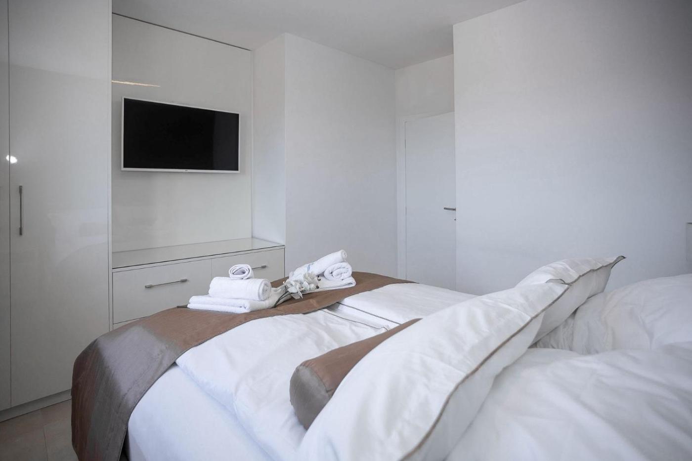 Two-Bedroom Apartment with Terrace and Sea View. This spacious apartment comprises 1 living room, 2 separate bedrooms and 1 bathroom with a shower. Guests can make meals in the kitchen that comes with a stovetop, a refrigerator, a dishwasher and kitchenware. The apartment provides air conditioning, a washing machine, a seating area as well as a terrace with sea views. The unit offers 3 beds.