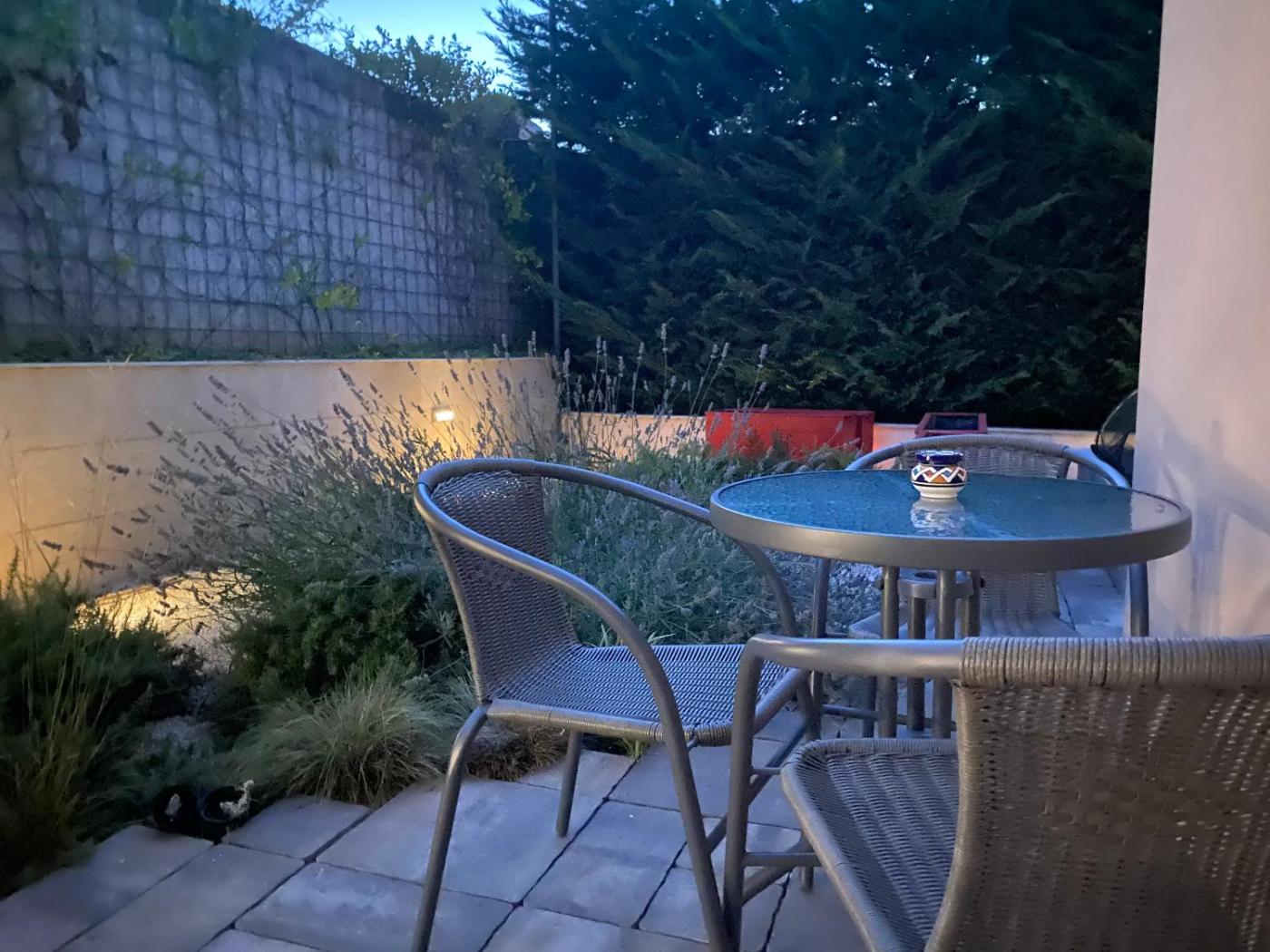 One-Bedroom Apartment. Boasting a private entrance, this air-conditioned apartment includes 1 living room, 1 separate bedroom and 1 bathroom with a shower and a hairdryer. In the fully equipped kitchen, guests will find a stovetop, a refrigerator, a dishwasher and kitchenware. Featuring a terrace with garden views, this apartment also offers a washing machine and a flat-screen TV. The unit has 2 beds.