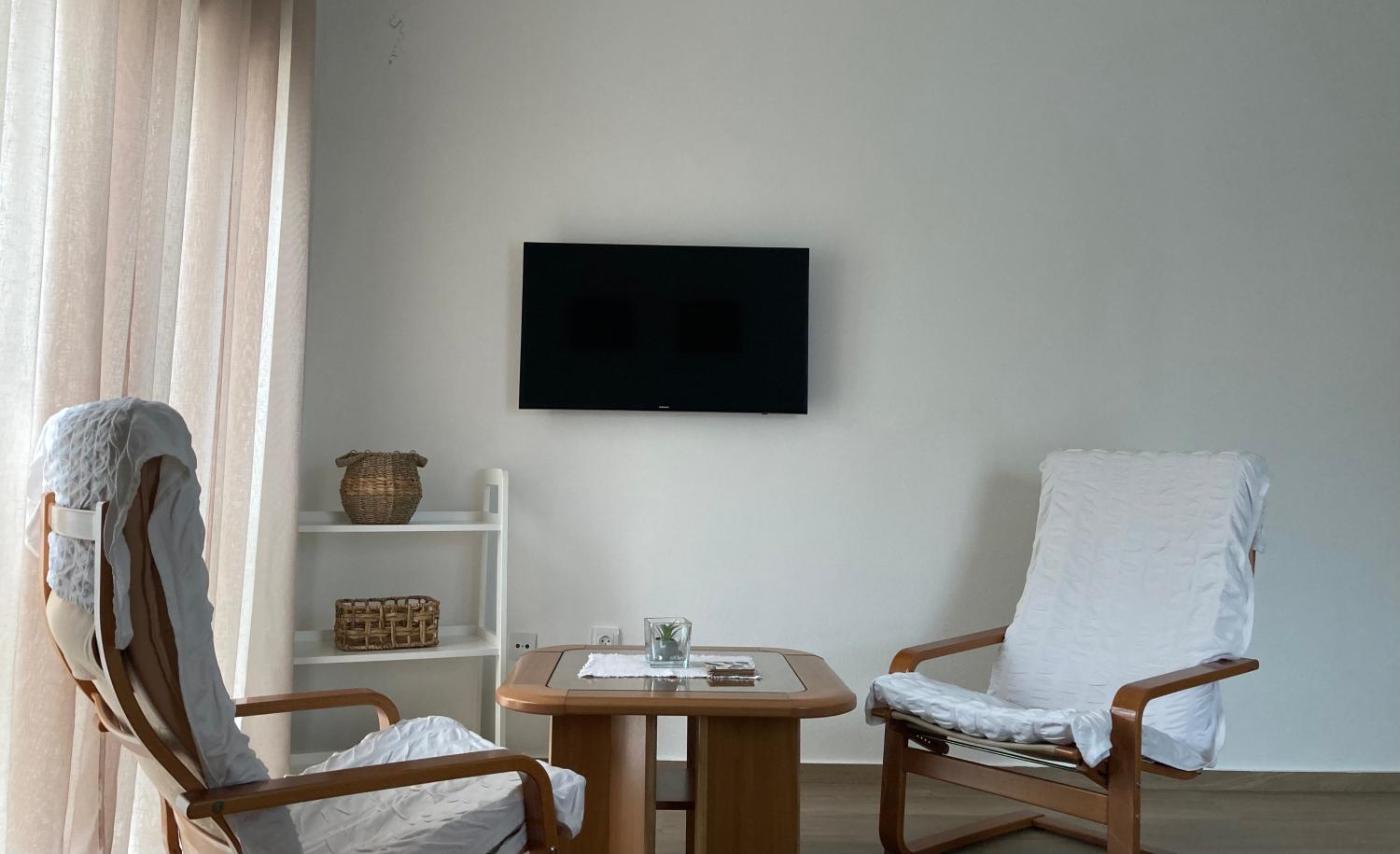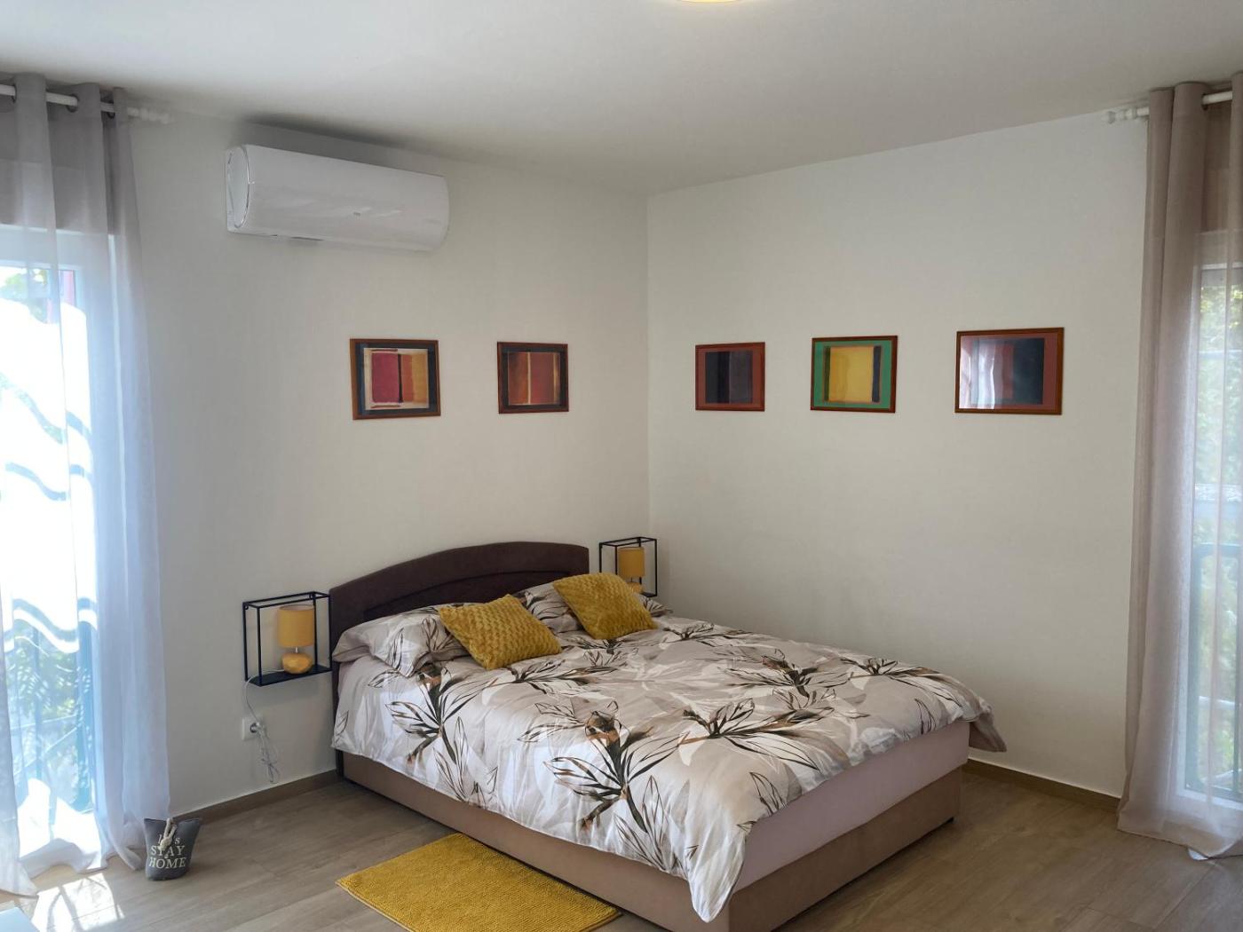 One-Bedroom Apartment. Boasting a private entrance, this air-conditioned apartment comes with a kitchen, 1 bedroom and 1 bathroom with a walk-in shower and a hairdryer. Guests can make meals in the kitchen that features a stovetop, a refrigerator, kitchenware and a microwave. This apartment has a coffee machine, a seating area, flat-screen TV, as well as chocolate for guests. The unit has 1 bed.