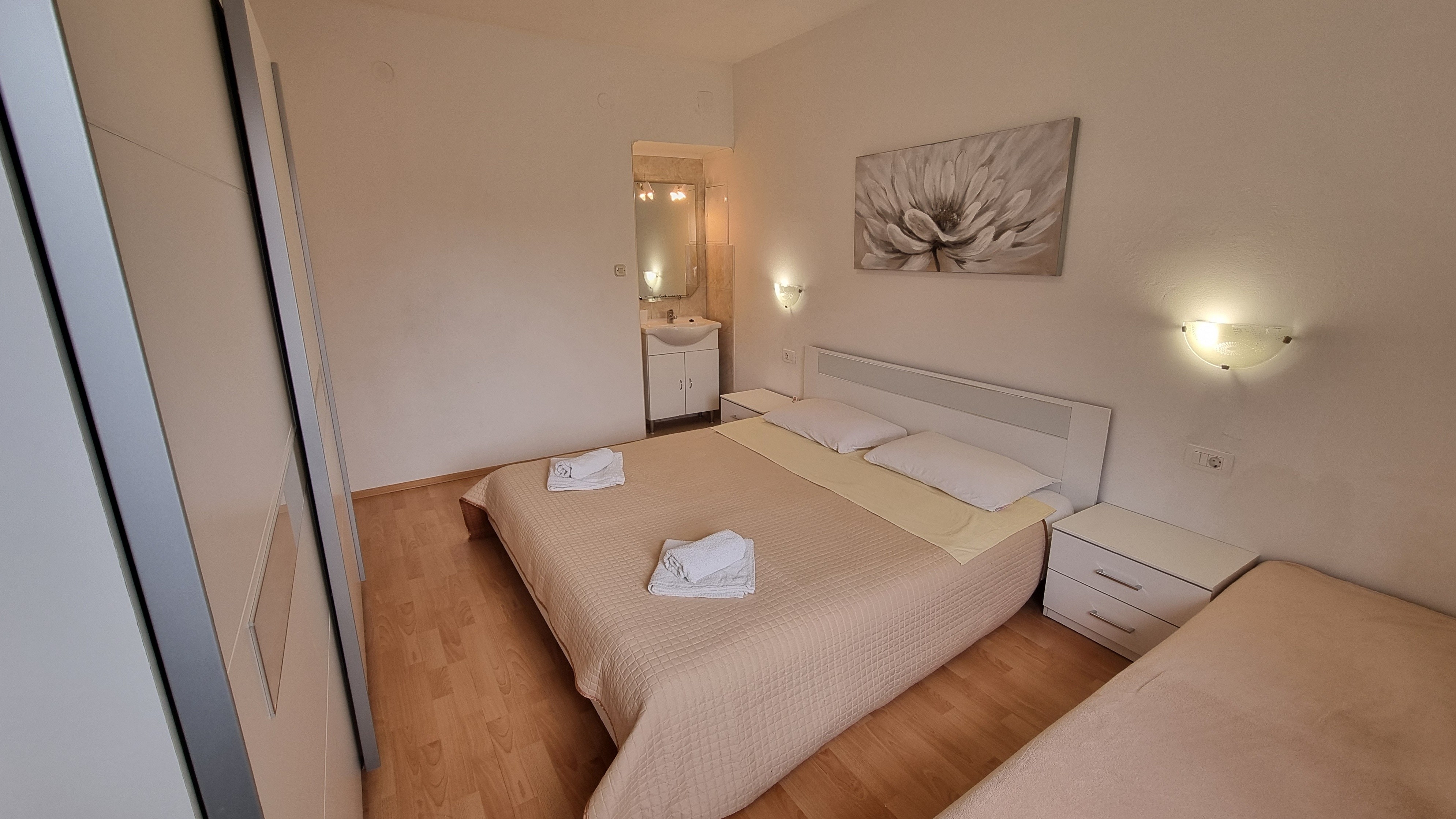Apartment can accommodate 9 guests. Beds are situated in 3 sleeping rooms, within 89m2. Guests can use a private terrace to enjoy the warm summer evenings. The apartment offers the sea view. Food can be prepared using barbecue which is shared with other guests too. This accommodation unit welcomes pets at an additional charge. INCLUDED IN THE PRICE: tourist tax, final cleaning, air-conditioning, parking, internet, baby cot, iron, ironing board, hairdryer. OBLIGATORY ADDITIONAL COSTS: short stay fee (surcharge depending on a number of booked nights: 30% - 1, 20% - 2, 10% - 3). OPTIONAL ADDITIONAL COSTS: pets (€10.00 per night). The availability of additional services for your chosen dates of stay, as well as their prices (if none are listed) must be checked ahead of time. Any additional services not shown in the price calculation are payable directly to the property owner and only if used by the visitor. Discounts to the base price: free day 14=13 (for reservations of 14 or more days you get one free day for the stay until 31122026).