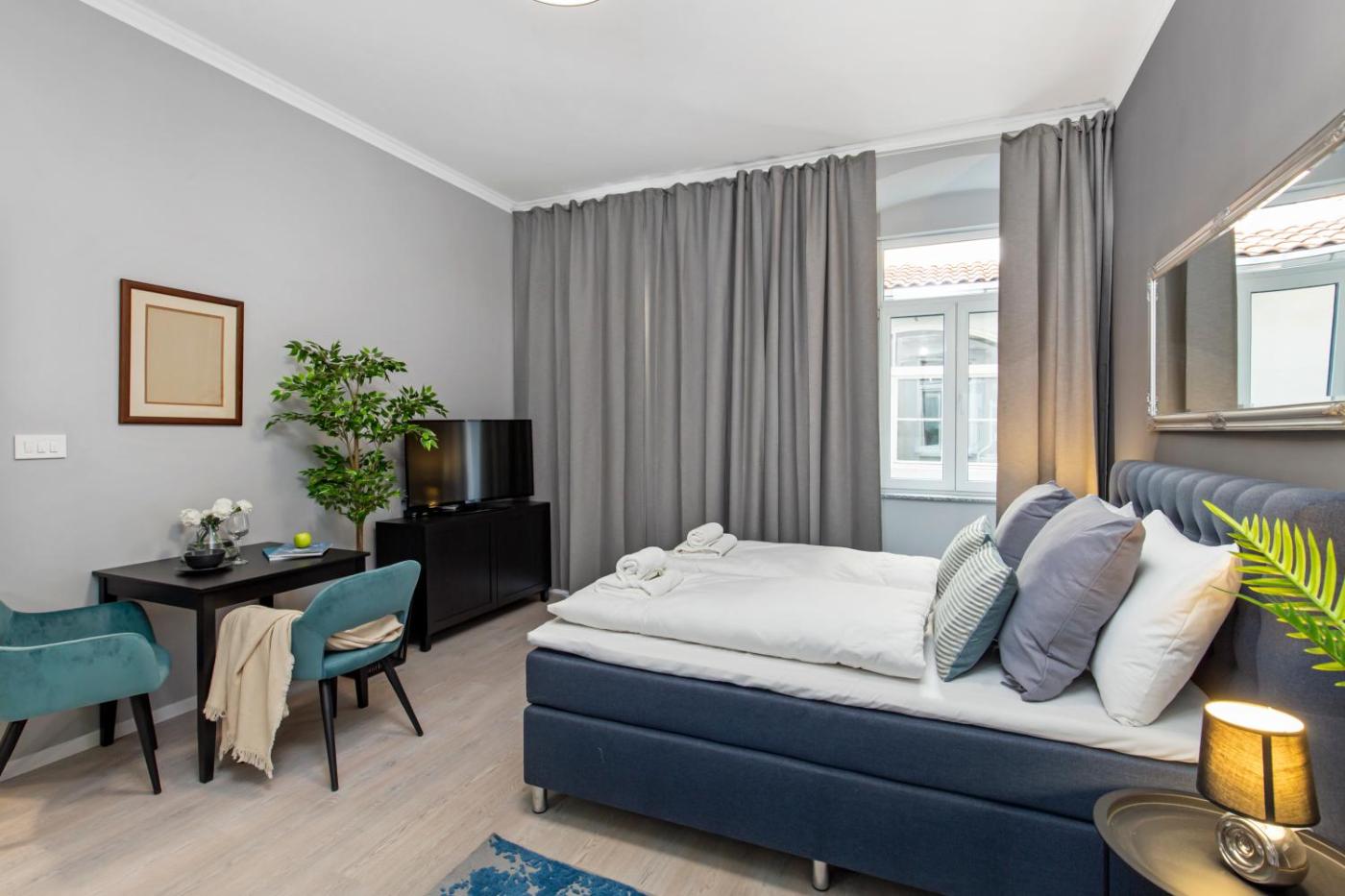 Deluxe Apartment. Featuring a private entrance, this air-conditioned apartment comprises 1 living room, 1 separate bedroom and 1 bathroom with a shower and a hairdryer. Guests can make meals in the kitchen that comes with a stovetop, a refrigerator, a dishwasher and kitchenware. The spacious apartment provides soundproof walls, a seating area, a dining area, a flat-screen TV with cable channels, as well as ancourtyard view. The unit offers 2 beds. ;