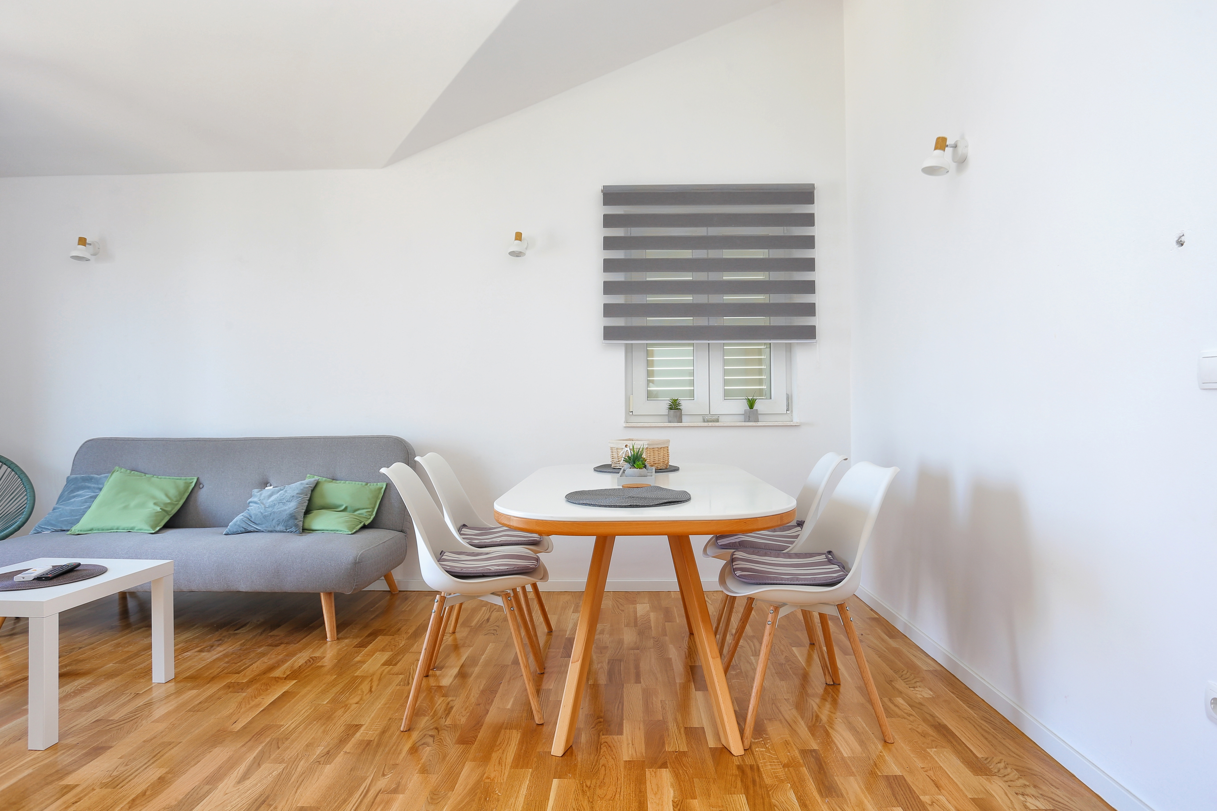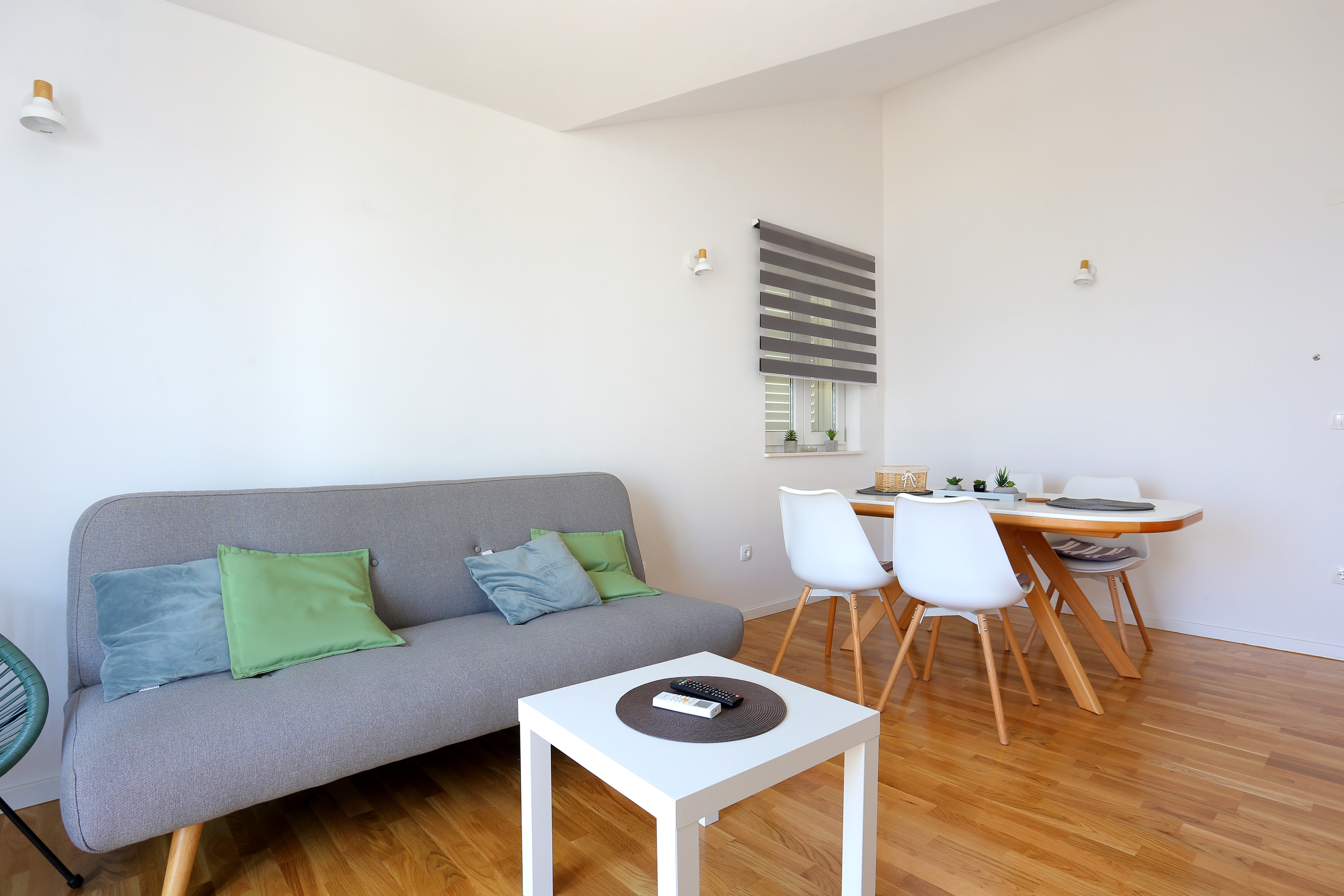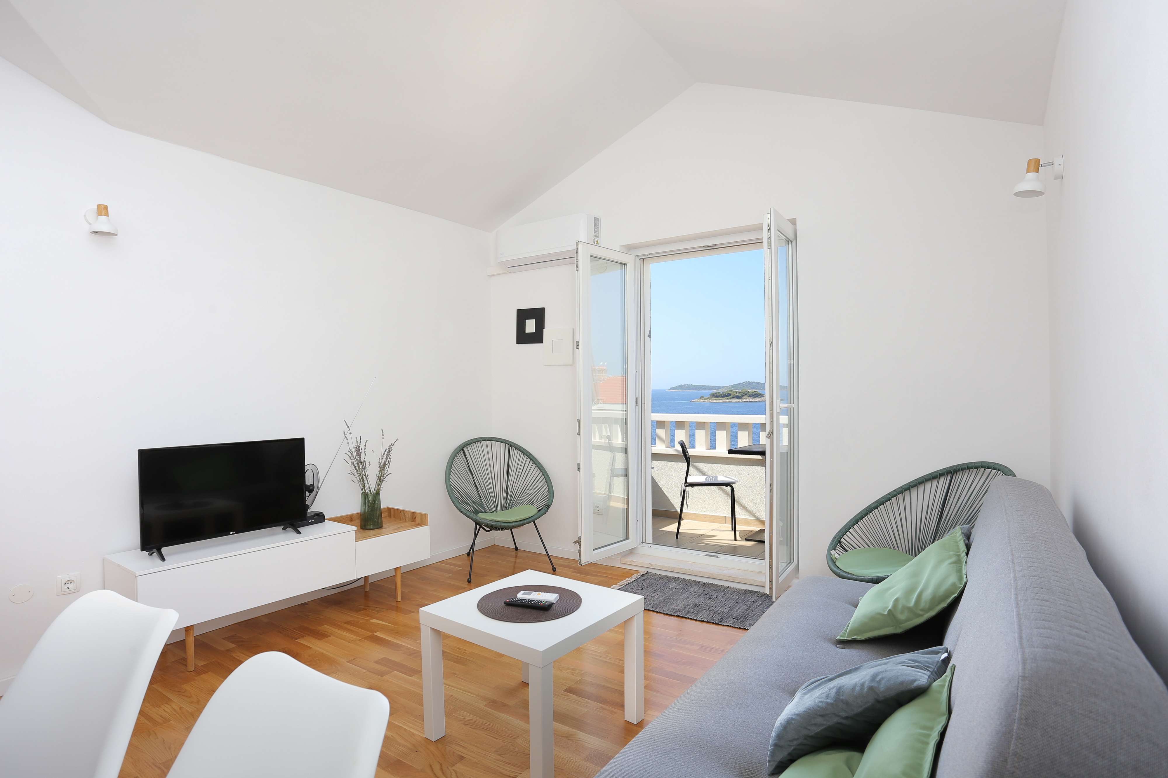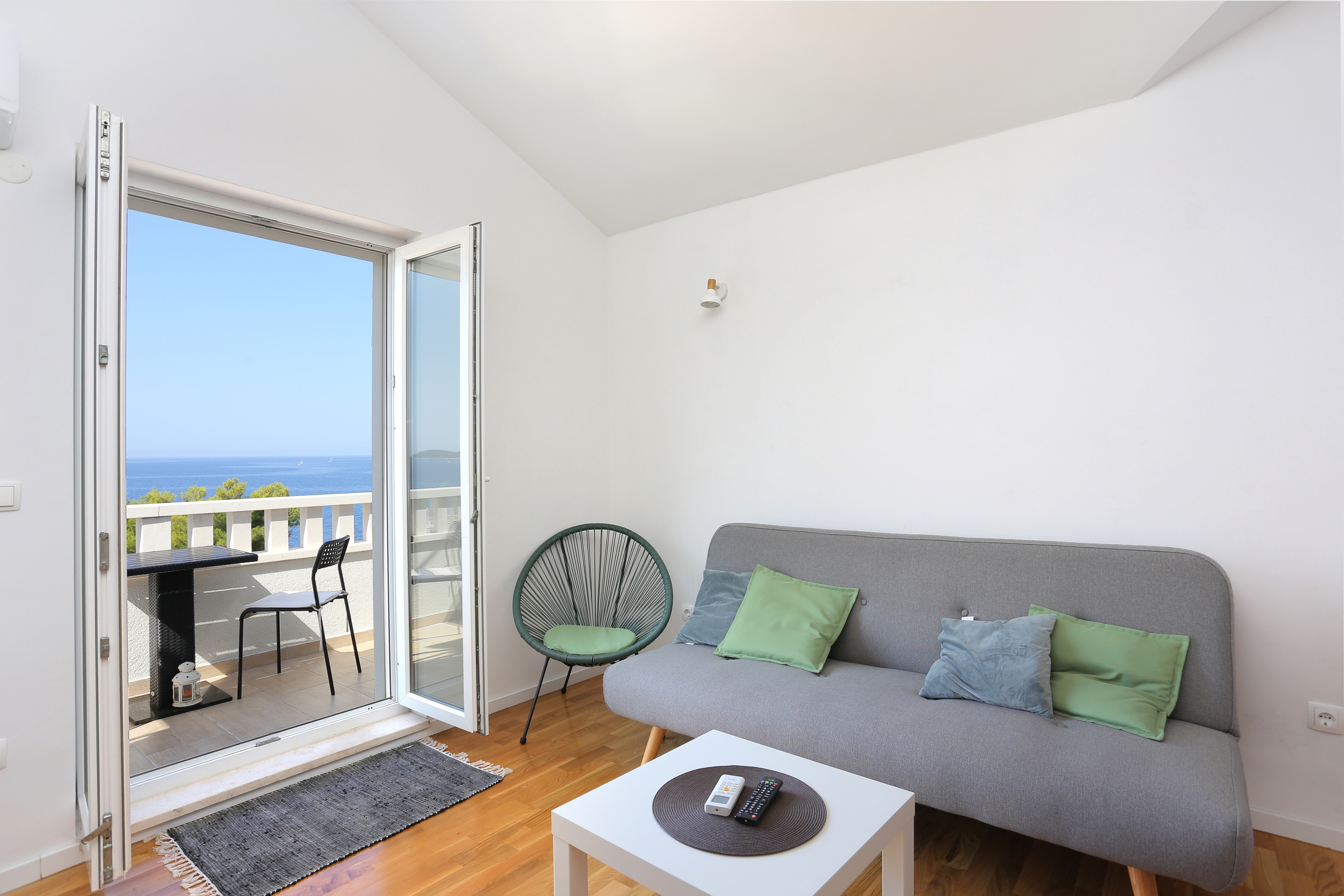 Apartment can accommodate 3 guests. Beds are situated in 1 sleeping rooms, but also in the living room, within 32m2. Guests can use a private balcony to enjoy the warm summer evenings. The apartment offers the sea view. Food can be prepared using barbecue which is shared with other guests too. INCLUDED IN THE PRICE: tourist tax, final cleaning, air-conditioning, parking, internet, baby cot. OBLIGATORY ADDITIONAL COSTS: short stay fee (surcharge depending on a number of booked nights: 30% - 1, 20% - 2, 10% - 3). OPTIONAL ADDITIONAL COSTS: laundry (€10.00 washing), bicycle (€10.00 daily (per piece)). The availability of additional services for your chosen dates of stay, as well as their prices (if none are listed) must be checked ahead of time. Any additional services not shown in the price calculation are payable directly to the property owner and only if used by the visitor. Discounts to the base price: free day 14=13 (for reservations of 14 or more days you get one free day for the stay until 31122026).