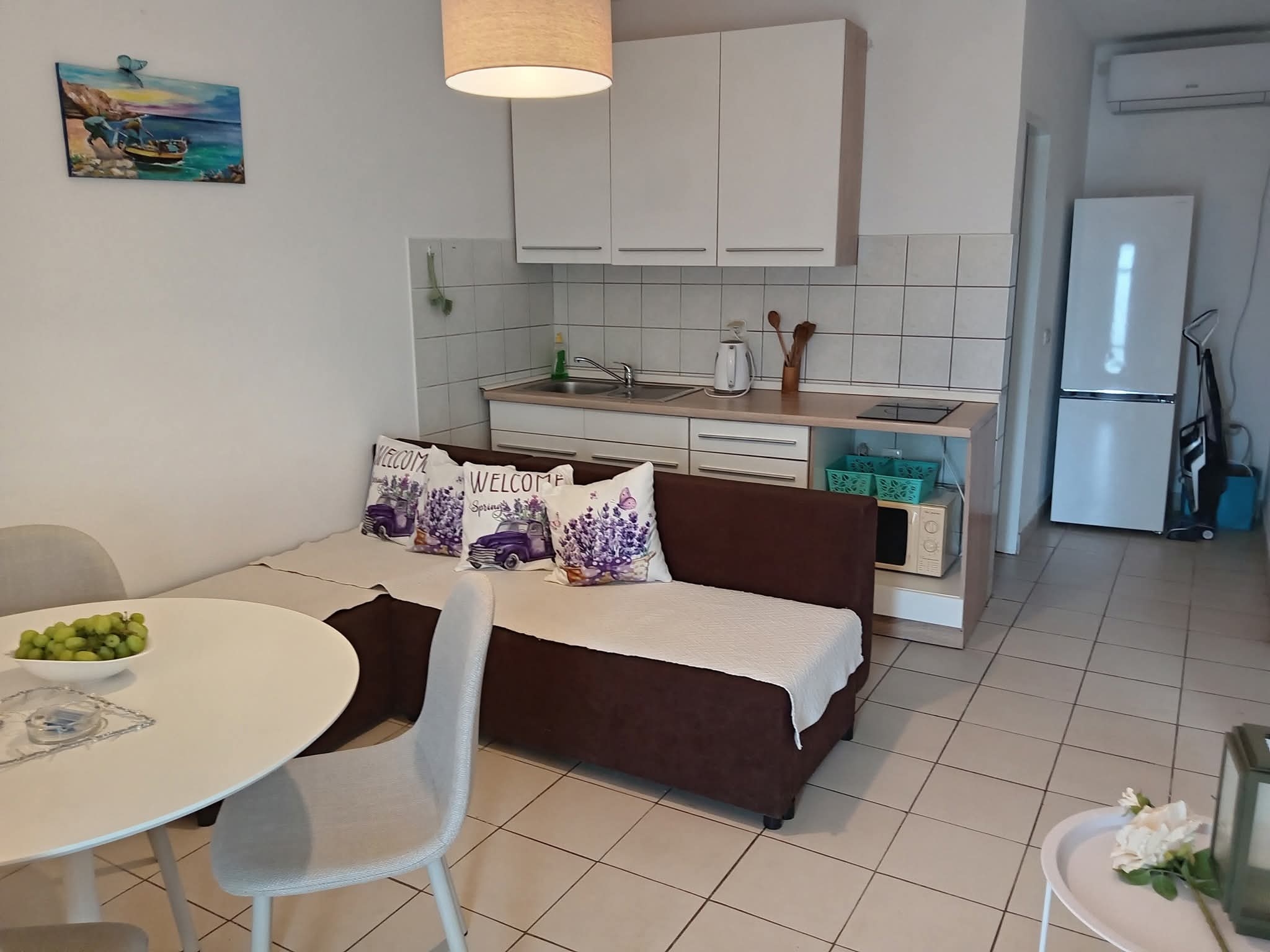 Apartment can accommodate 4 guests. Beds are situated in 2 sleeping rooms, within 47m2. Guests can use a private terrace to enjoy the warm summer evenings. The apartment offers the sea view. Food can be prepared using barbecue which is shared with other guests too. INCLUDED IN THE PRICE: tourist tax, final cleaning, air-conditioning, parking, internet, additional bed. OBLIGATORY ADDITIONAL COSTS: short stay fee (surcharge depending on a number of booked nights: 30% - 1, 20% - 2, 10% - 3). The availability of additional services for your chosen dates of stay, as well as their prices (if none are listed) must be checked ahead of time. Any additional services not shown in the price calculation are payable directly to the property owner and only if used by the visitor.