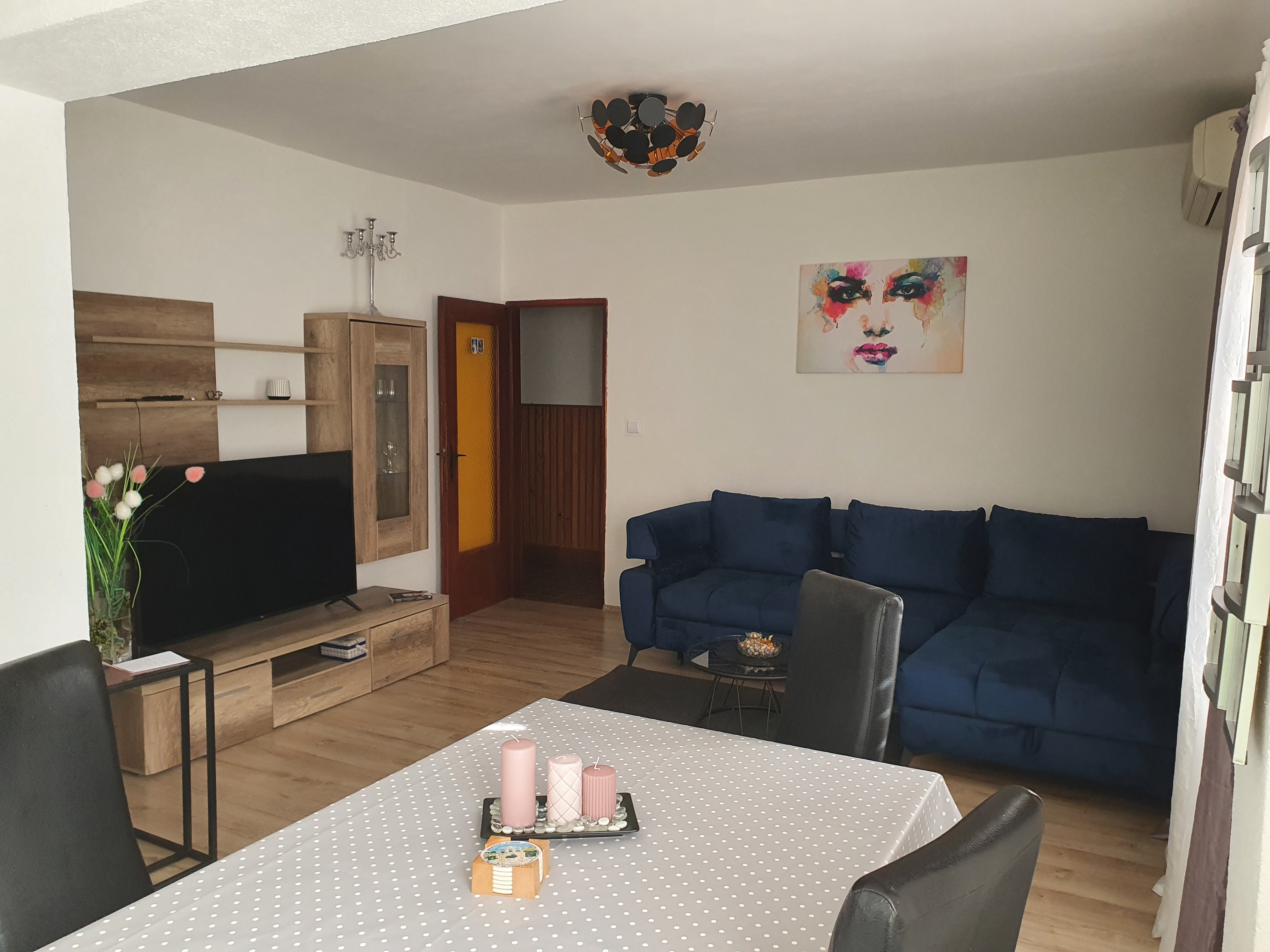 Apartment can accommodate 5 guests. Beds are situated in 2 sleeping rooms, within 46m2. Guests can use a private terrace to enjoy the warm summer evenings. The apartment offers the sea view. Food can be prepared using barbecue which is shared with other guests too. INCLUDED IN THE PRICE: tourist tax, final cleaning, air-conditioning, parking, internet, portable barbecue. OBLIGATORY ADDITIONAL COSTS: short stay fee (surcharge depending on a number of booked nights: 30% - 1, 20% - 2, 10% - 3). OPTIONAL ADDITIONAL COSTS: boat mooring (€50.00 per night), additional bed (€15.00 per night). The availability of additional services for your chosen dates of stay, as well as their prices (if none are listed) must be checked ahead of time. Any additional services not shown in the price calculation are payable directly to the property owner and only if used by the visitor.