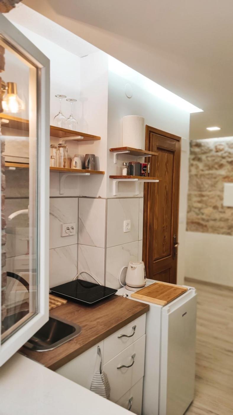 Studio Apartment. Boasting a private entrance, this air-conditioned apartment includes 1 living room, 1 separate bedroom and 1 bathroom with a shower and a hairdryer. Guests can make meals in the kitchen that is fitted with a stovetop, a refrigerator, kitchenware and a tea and coffee maker. Featuring a terrace, this apartment also offers a washing machine, soundproof walls and a flat-screen TV with streaming services. The unit has 2 beds. ;