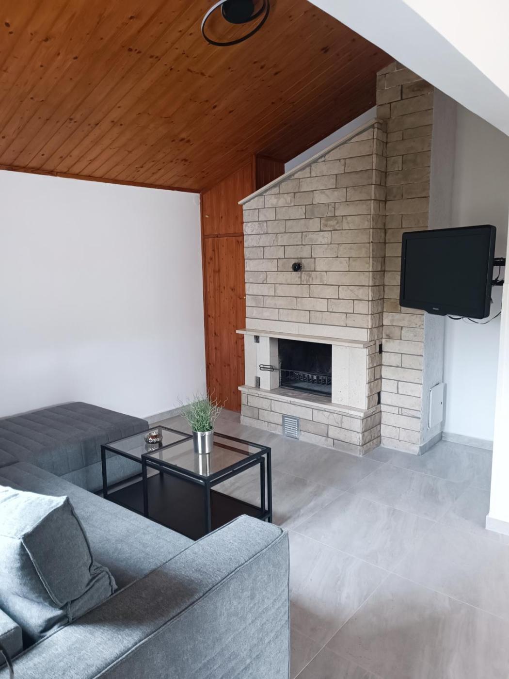 The spacious apartment is fitted with 2 bedrooms, 1 bathroom, bed linen, towels, a flat-screen TV with streaming services, a dining area, a fully equipped kitchen, and a terrace with sea views. Guests can take in the ambience of the surroundings from an outdoor dining area or keep themselves warm by the fireplace on colder days. The property offers mountain views.