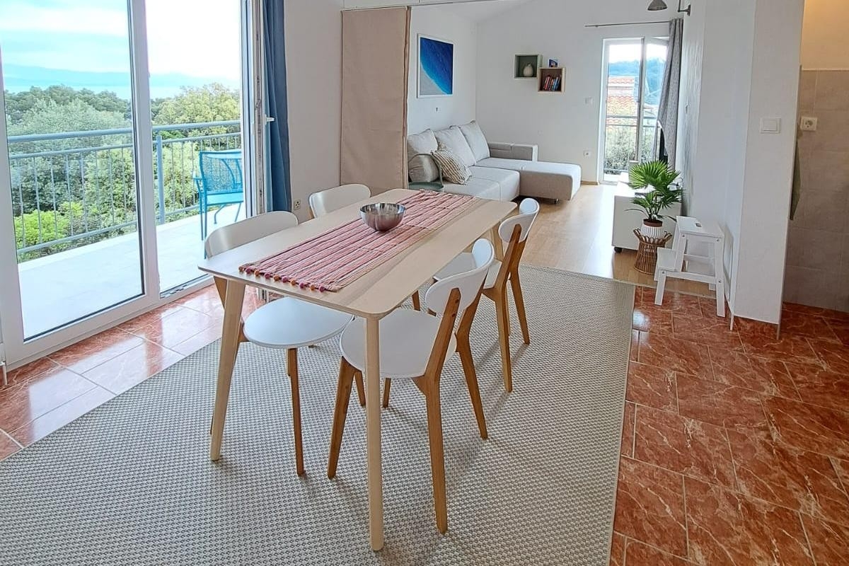 Apartment can accommodate 4 guests. Beds are situated in 1 sleeping rooms, but also in the living room, within 42m2. Guests can use a private balcony to enjoy the warm summer evenings. The apartment offers the sea view. Food can be prepared using barbecue which is shared with other guests too. INCLUDED IN THE PRICE: tourist tax, final cleaning, air-conditioning, parking, internet, baby cot, hairdryer. The availability of additional services for your chosen dates of stay, as well as their prices (if none are listed) must be checked ahead of time. Any additional services not shown in the price calculation are payable directly to the property owner and only if used by the visitor. Discounts to the base price: free day 14=13 (for reservations of 14 or more days you get one free day for the stay until 31122026).