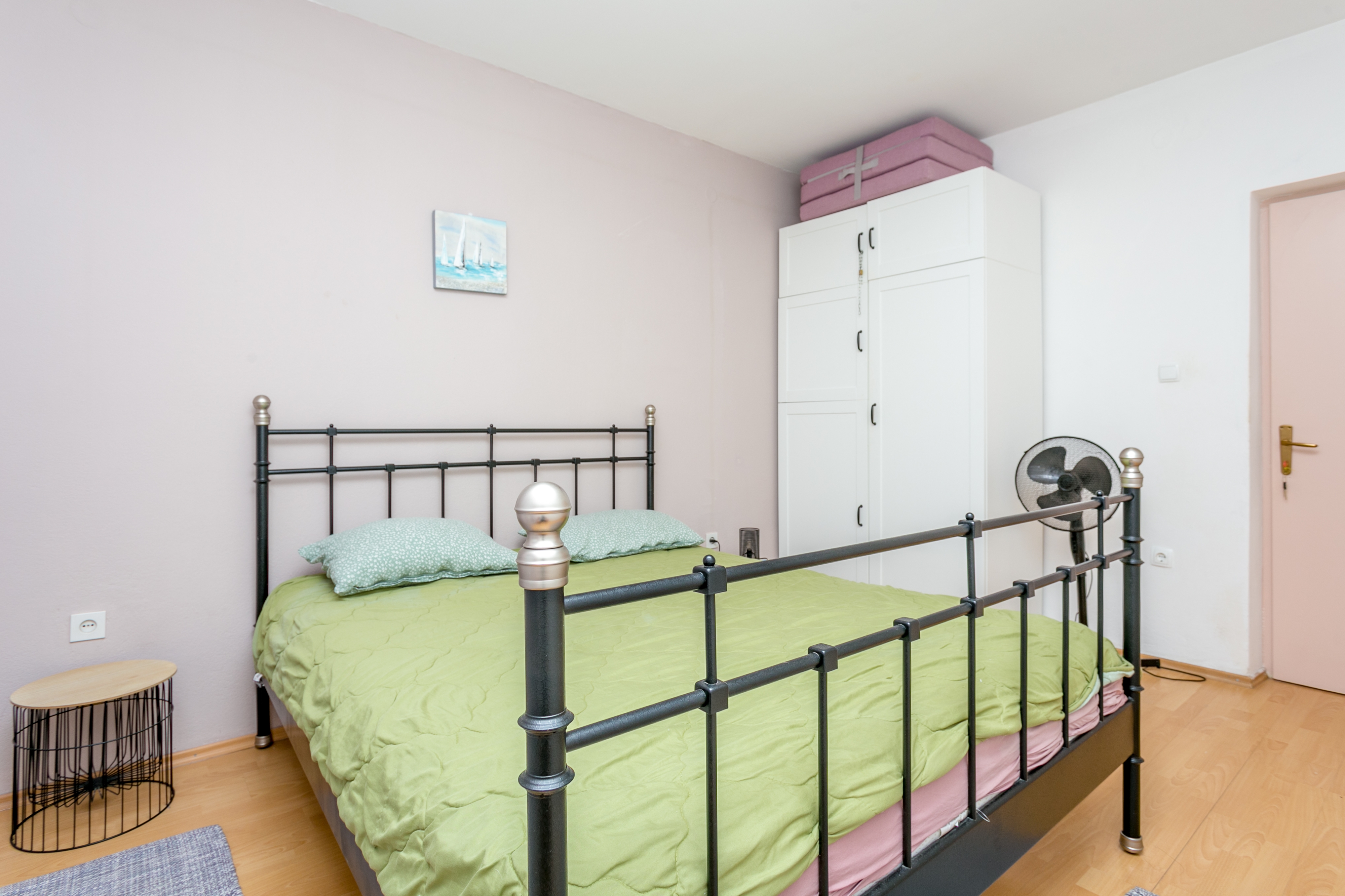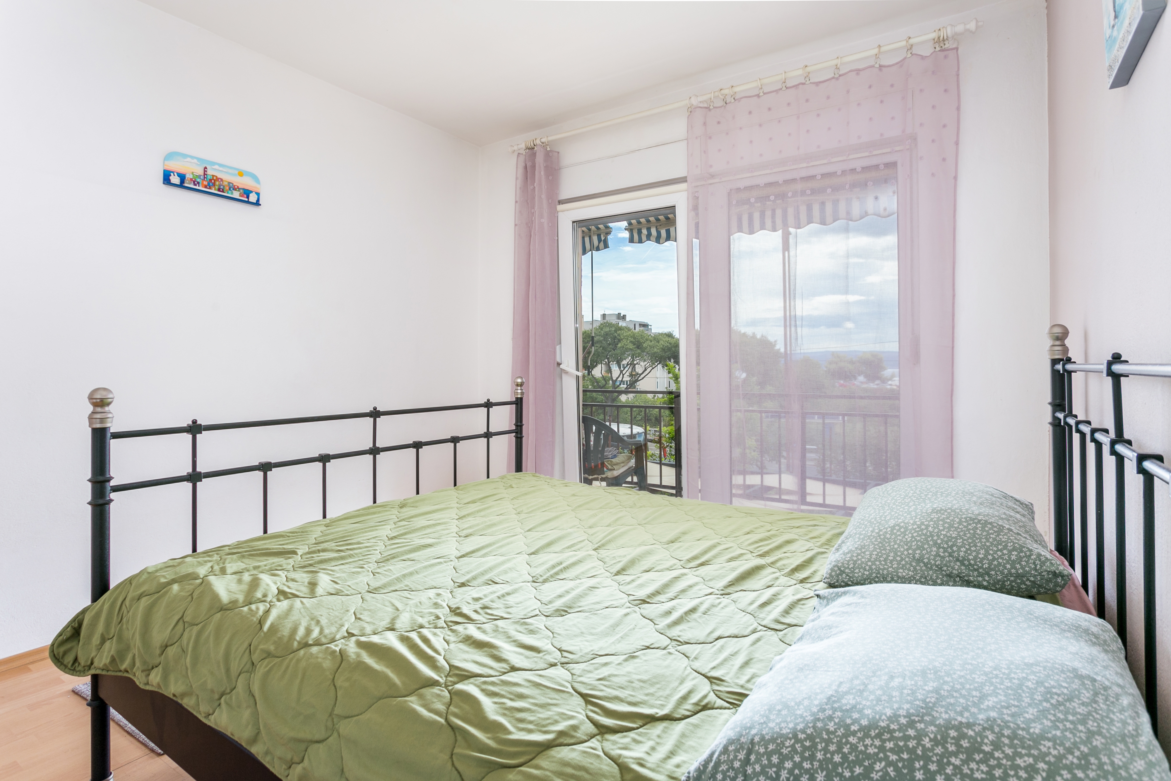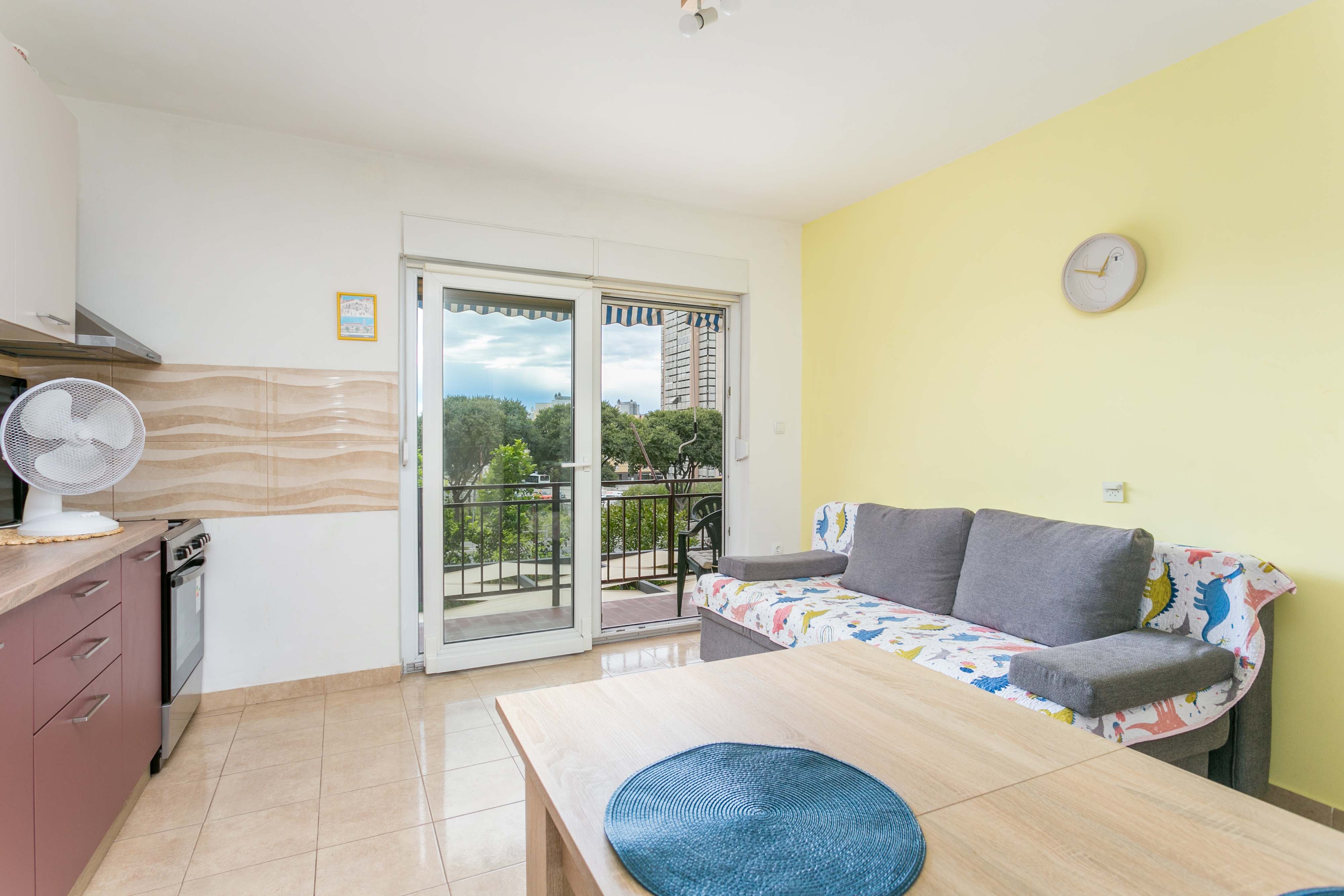 Apartment can accommodate 4 guests. Beds are situated in 1 sleeping rooms, but also in the living room, within 42m2. Guests can use a private balcony to enjoy the warm summer evenings. The apartment offers the sea view. Other guests or hosts pass through the hallway of the booked accommodation unit. INCLUDED IN THE PRICE: tourist tax, final cleaning, air-conditioning, parking, internet, additional bed, iron. OBLIGATORY ADDITIONAL COSTS: short stay fee (surcharge depending on a number of booked nights: 30% - 1, 20% - 2, 10% - 3). The availability of additional services for your chosen dates of stay, as well as their prices (if none are listed) must be checked ahead of time. Any additional services not shown in the price calculation are payable directly to the property owner and only if used by the visitor.