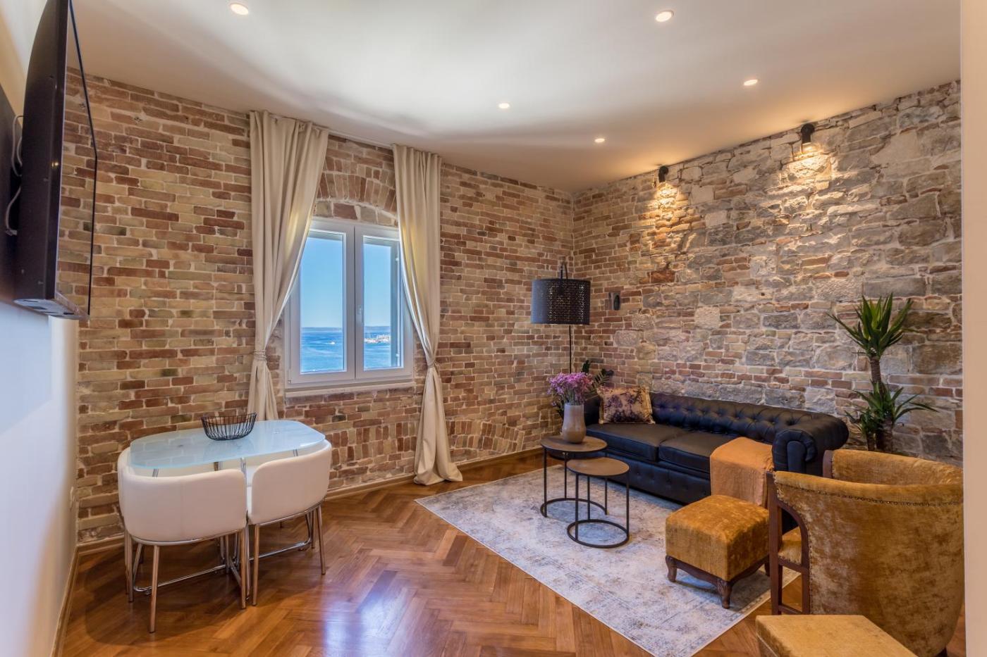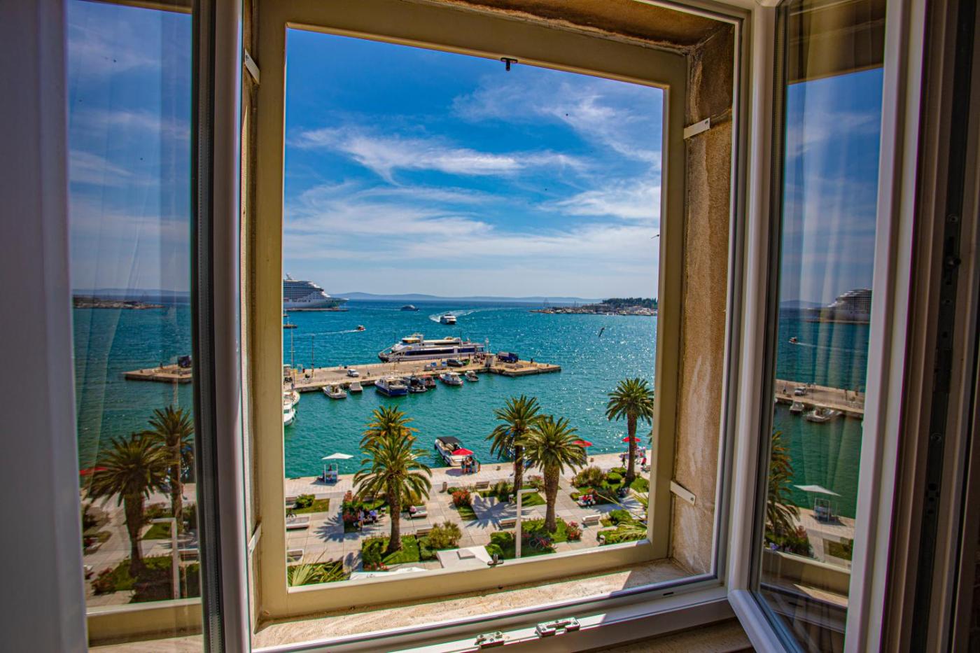 Right in the heart of Split, Riva - the heart of palace features rooms with free WiFi. The property has sea and mountain views, and is 1 km from Bacvice Beach. This 4-star apartment offers private entrance.
