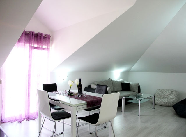 Apartment can accommodate 5 guests. Beds are situated in 2 sleeping rooms, but also in the living room, within 75m2. There is no balcony or terrace in the reserved accommodation unit. INCLUDED IN THE PRICE: tourist tax, final cleaning, air-conditioning, parking, garage, internet, baby cot, iron, ironing board, hairdryer. The availability of additional services for your chosen dates of stay, as well as their prices (if none are listed) must be checked ahead of time. Any additional services not shown in the price calculation are payable directly to the property owner and only if used by the visitor.