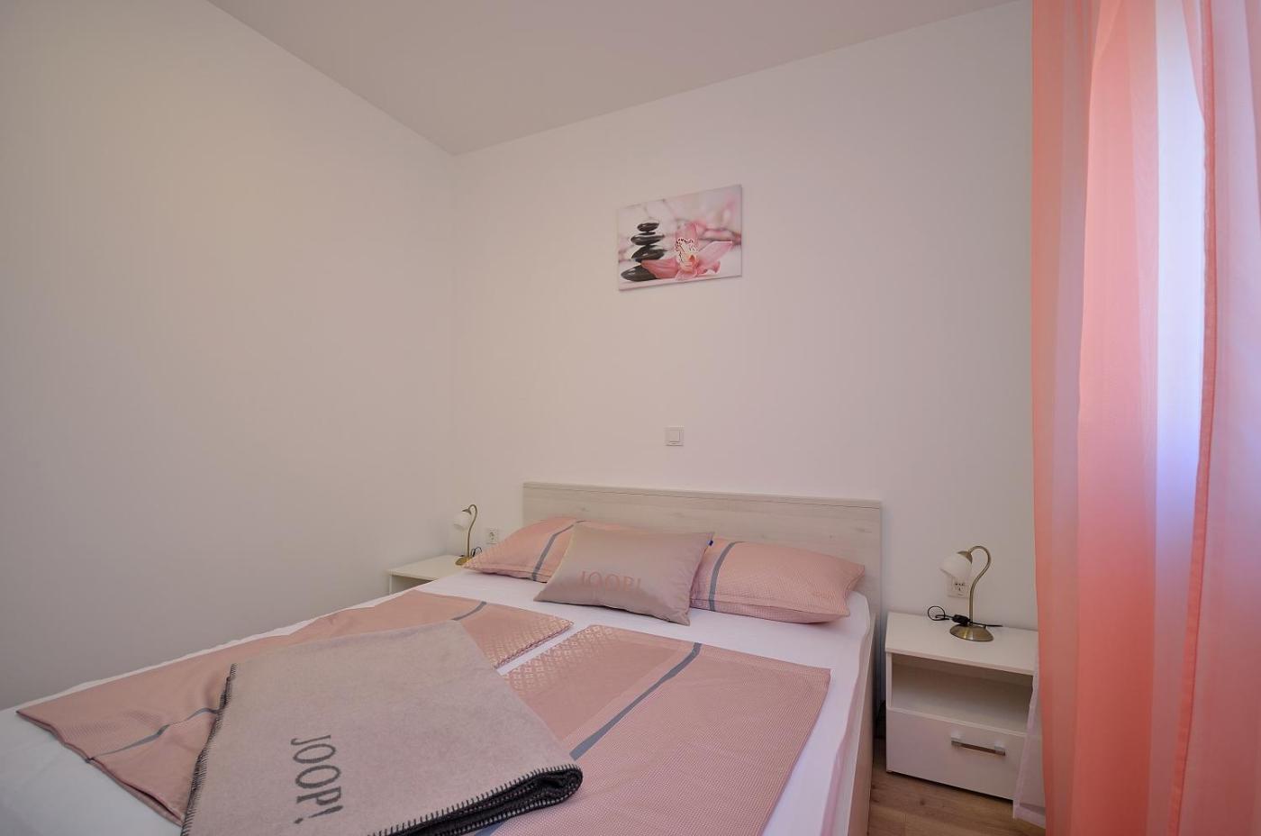 Two-Bedroom Apartment. Featuring a private entrance, this air-conditioned apartment comprises 1 living room, 2 separate bedrooms and 1 bathroom with a shower and a bidet. Guests will find a stovetop, a refrigerator, kitchenware and an oven in the kitchen. The apartment also provides guests with a barbecue. The spacious apartment provides a flat-screen TV with satellite channels, a washing machine, a tea and coffee maker, a seating area as well as a quiet street view. The unit offers 4 beds. ;