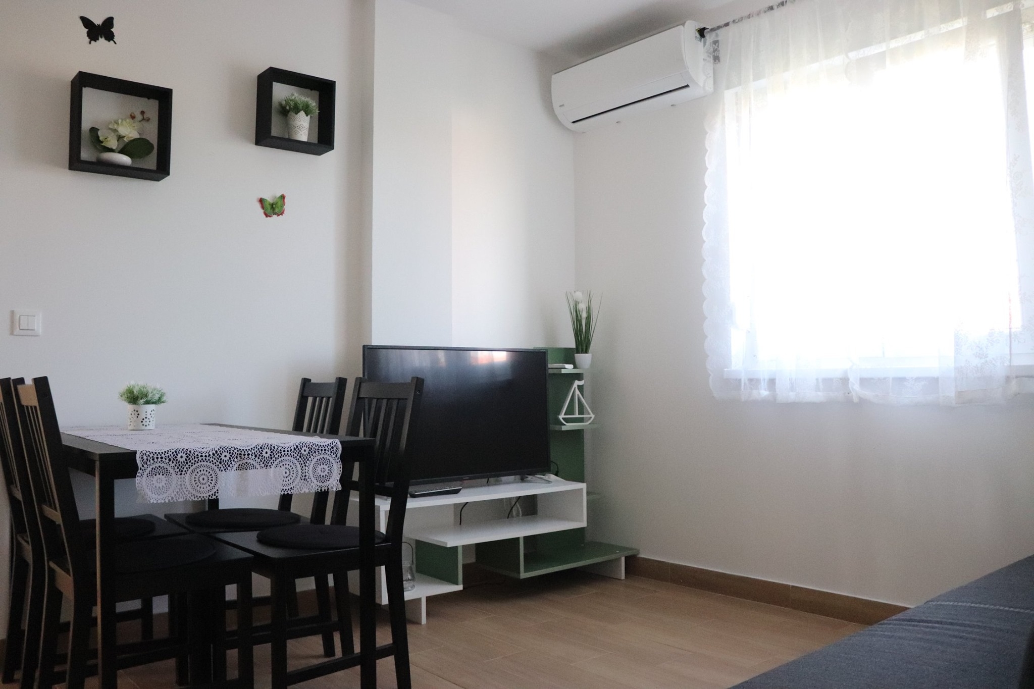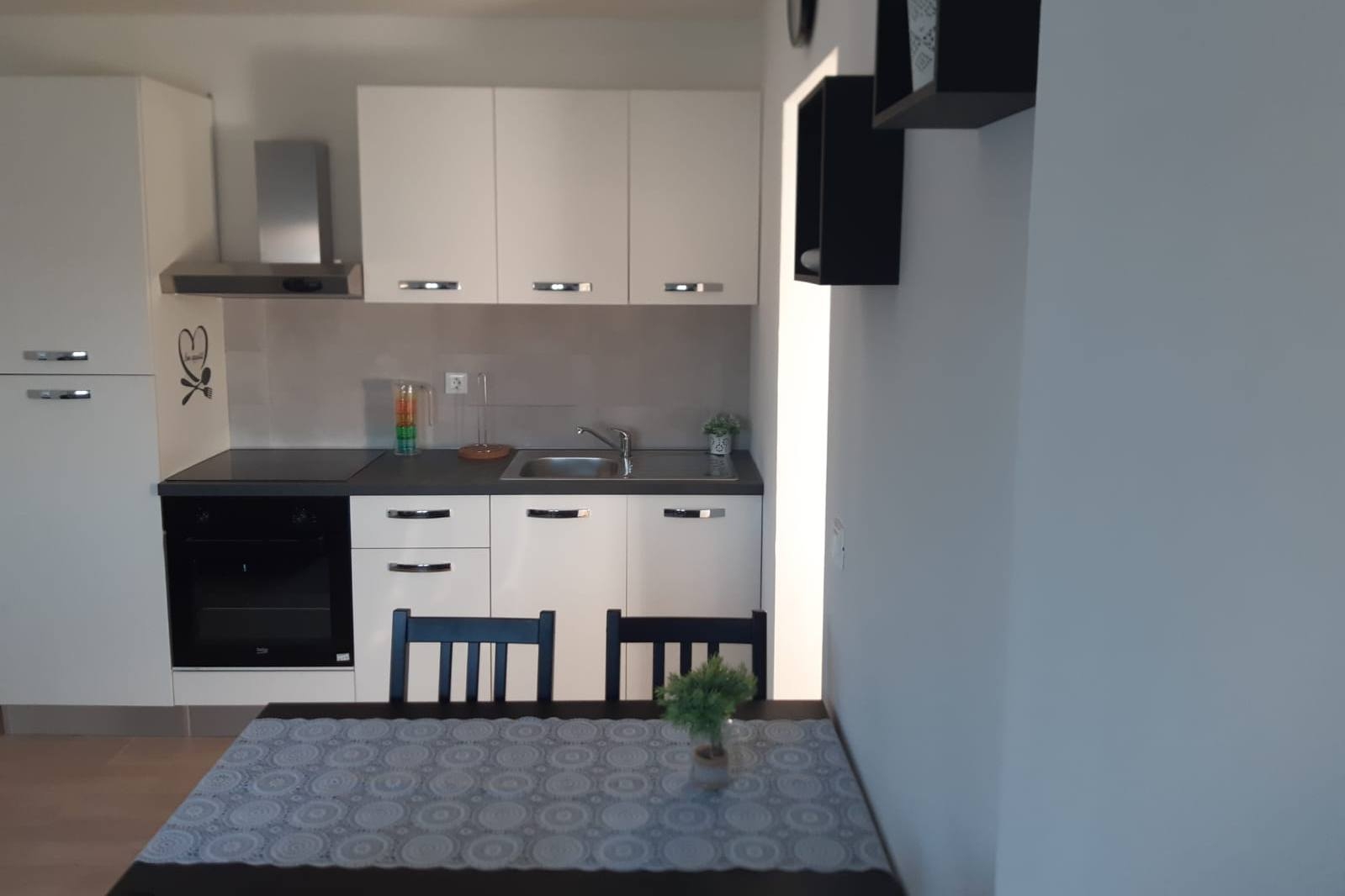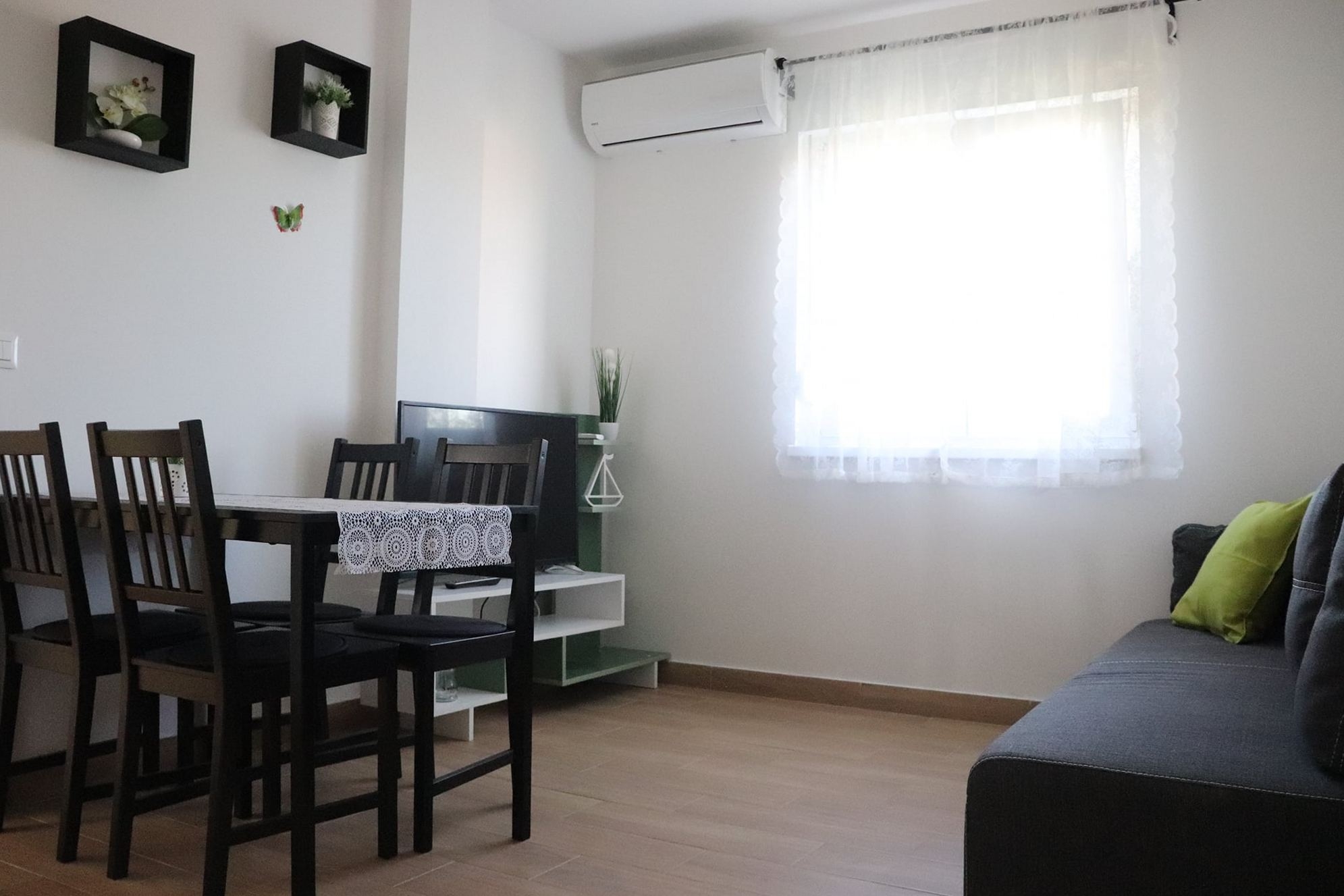 Apartment can accommodate 4 guests. Beds are situated in 1 sleeping rooms, but also in the living room, within 44m2. Guests can use a private balcony to enjoy the warm summer evenings. The apartment offers the sea view. Food can be prepared using barbecue which is shared with other guests too. INCLUDED IN THE PRICE: tourist tax, final cleaning, air-conditioning, parking, internet, baby cot, iron, ironing board. The availability of additional services for your chosen dates of stay, as well as their prices (if none are listed) must be checked ahead of time. Any additional services not shown in the price calculation are payable directly to the property owner and only if used by the visitor.