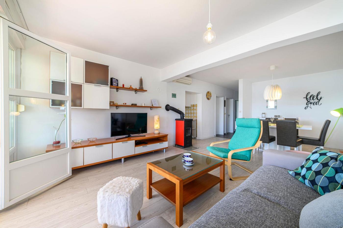 Apartment. The fireplace is a top feature of this apartment. This spacious apartment includes 1 living room, 3 separate bedrooms and 1 bathroom with a shower and free toiletries. Guests will find a stovetop, a refrigerator, a dishwasher and kitchenware in the well-equipped kitchen. The apartment also features a barbecue. The air-conditioned apartment offers a flat-screen TV with streaming services, a washing machine, a private entrance, soundproof walls as well as sea views. The unit has 3 beds.