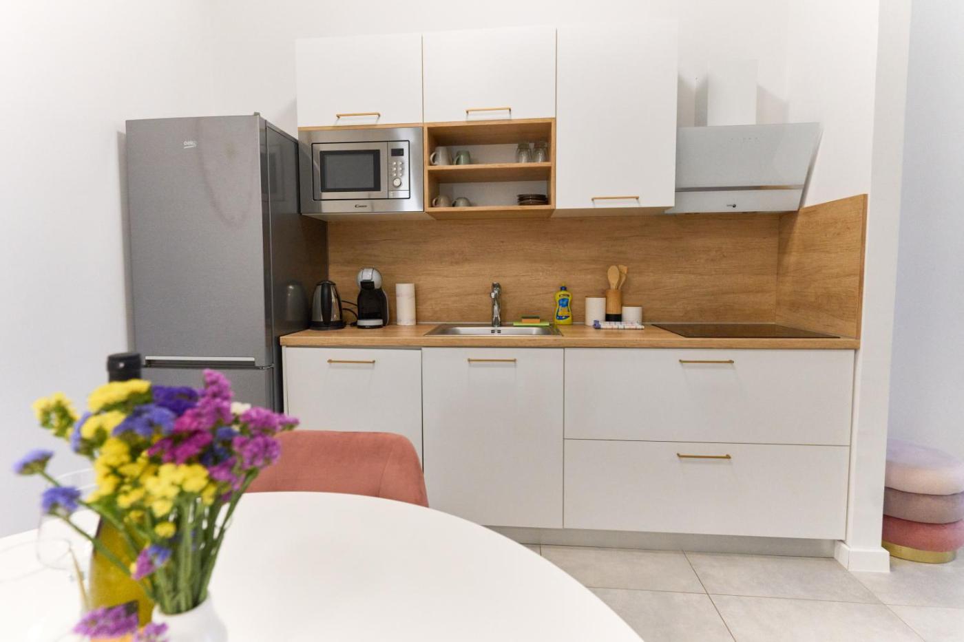 Two-Bedroom Apartment. This air-conditioned apartment is comprised of 1 living room, 2 separate bedrooms and 1 bathroom with a shower. The well-equipped kitchen features a stovetop, a refrigerator, a dishwasher and kitchenware. The apartment offers a washing machine, a tea and coffee maker, a wardrobe and a flat-screen TV. The unit offers 3 beds.