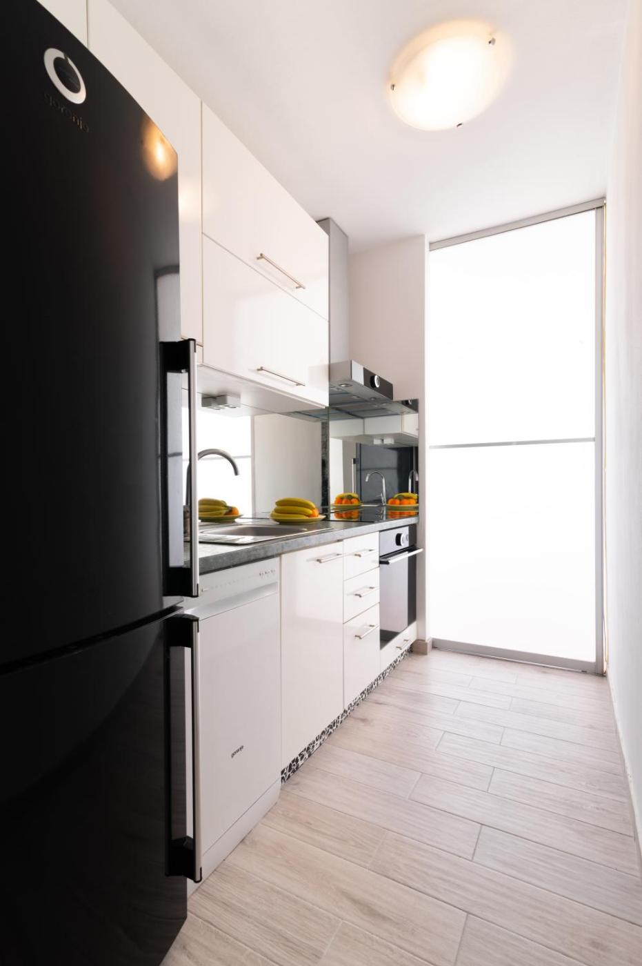 Two-Bedroom Apartment. Guests can make meals in the kitchen that has a stovetop, a refrigerator, a dishwasher and kitchenware. This apartment is air-conditioned and has a seating area with a flat-screen TV, a washing machine, a wardrobe, an electric kettle, as well as a sofa. The unit has 3 beds.