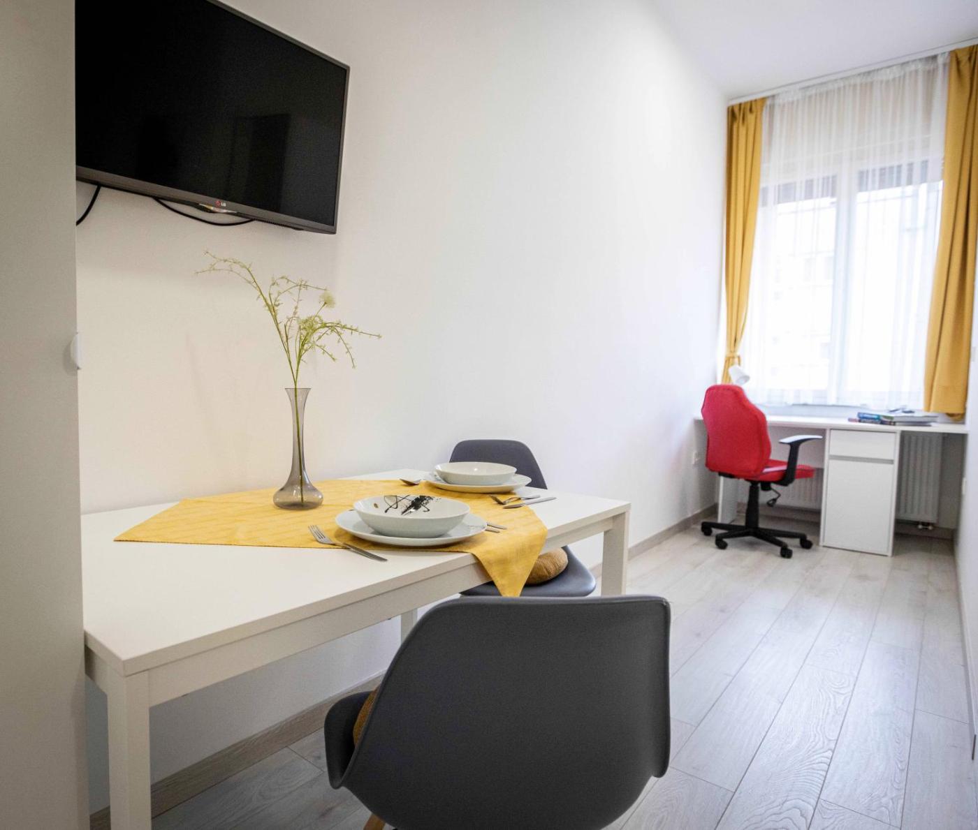 At the apartment complex, the units have a desk, a flat-screen TV, a private bathroom, bed linen and towels. Kitchenware and kettle are also featured.
