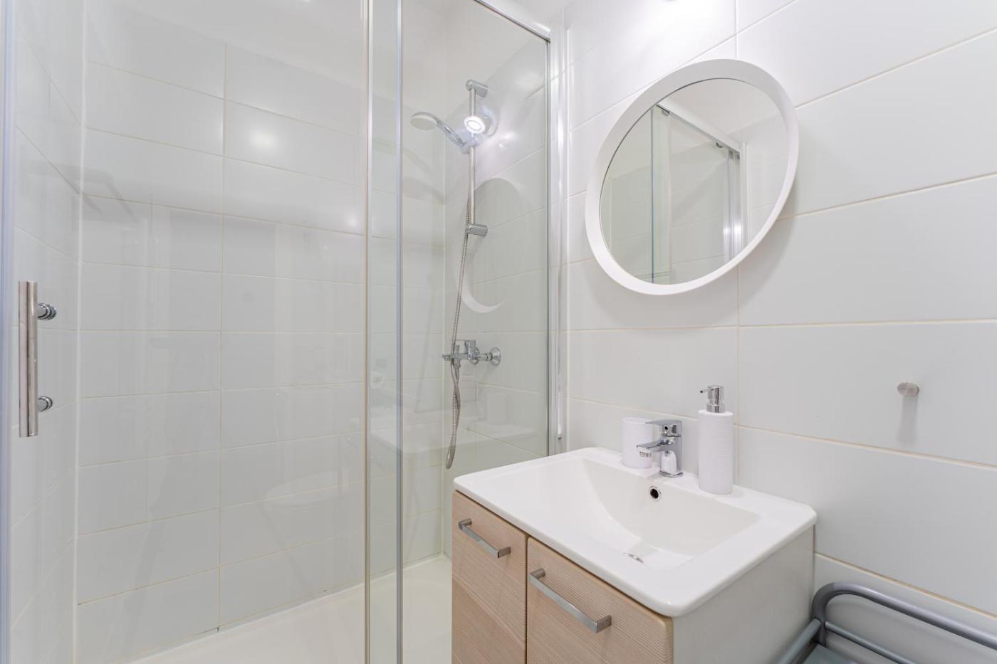 Studio Apartment. The air-conditioned apartment has 1 bedroom and 1 bathroom with a walk-in shower and a hairdryer. In the well-fitted kitchen, guests will find a stovetop, a refrigerator, kitchenware and a microwave. The apartment offers a washing machine, soundproof walls, a wardrobe, an electric kettle, as well as a flat-screen TV. The unit has 2 beds.